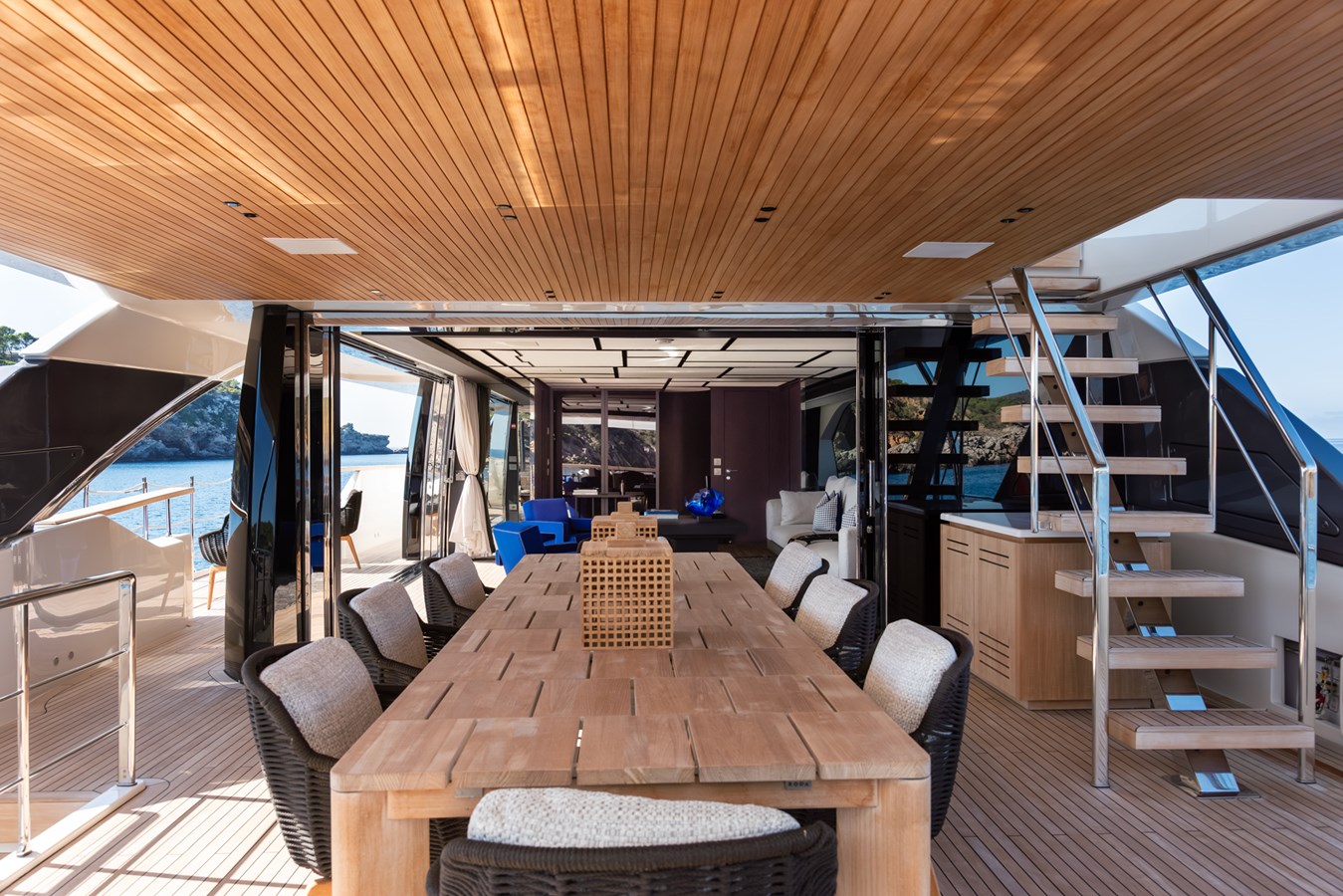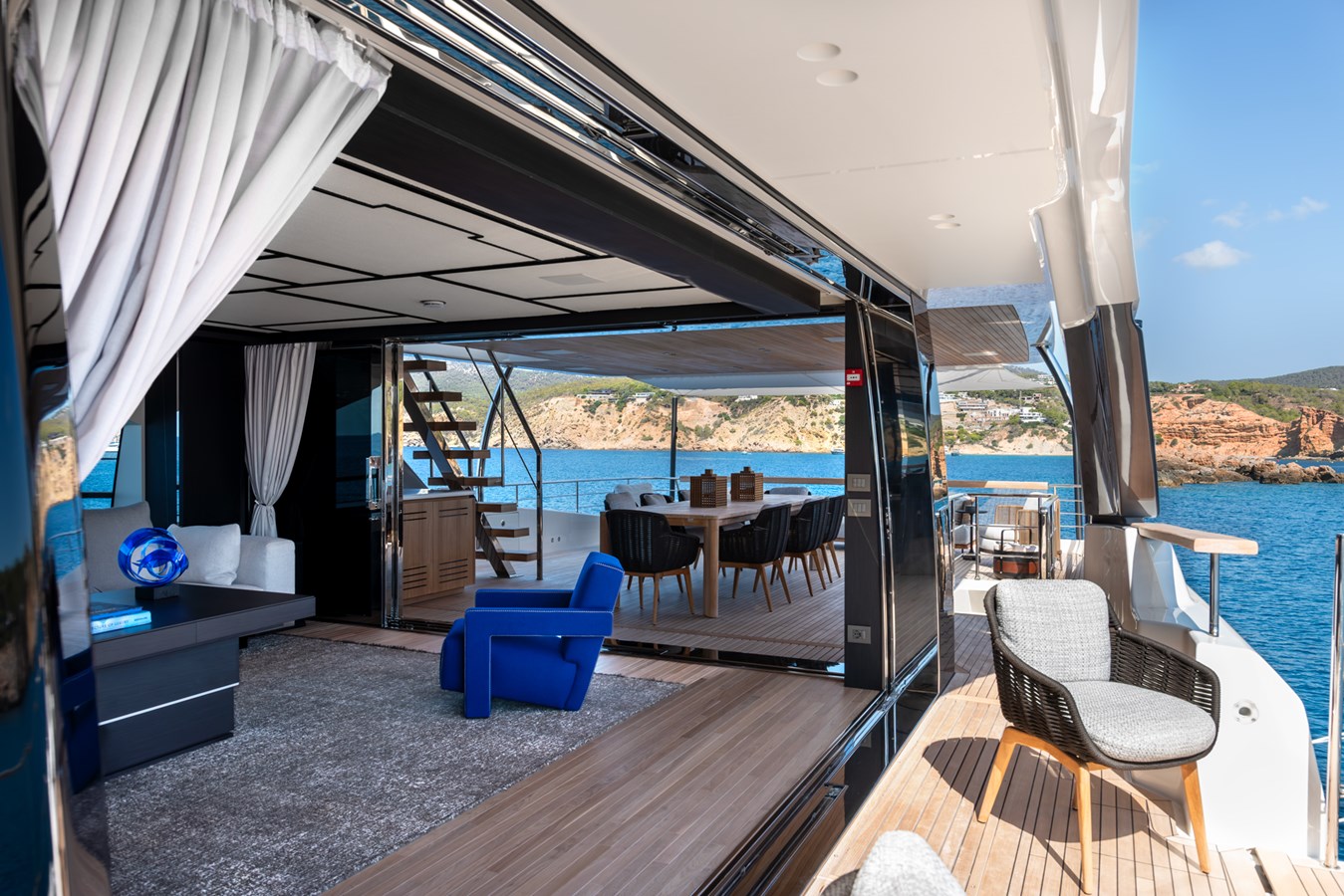 Inside, you’ll find beautifully appointed interiors, crafted with the finest materials and a range of custom finishes. The open-plan salon is flooded with natural light, while the yacht's versatile layouts offer exceptional comfort for you and your guests. Every detail has been meticulously designed to ensure a luxurious and personalized experience.