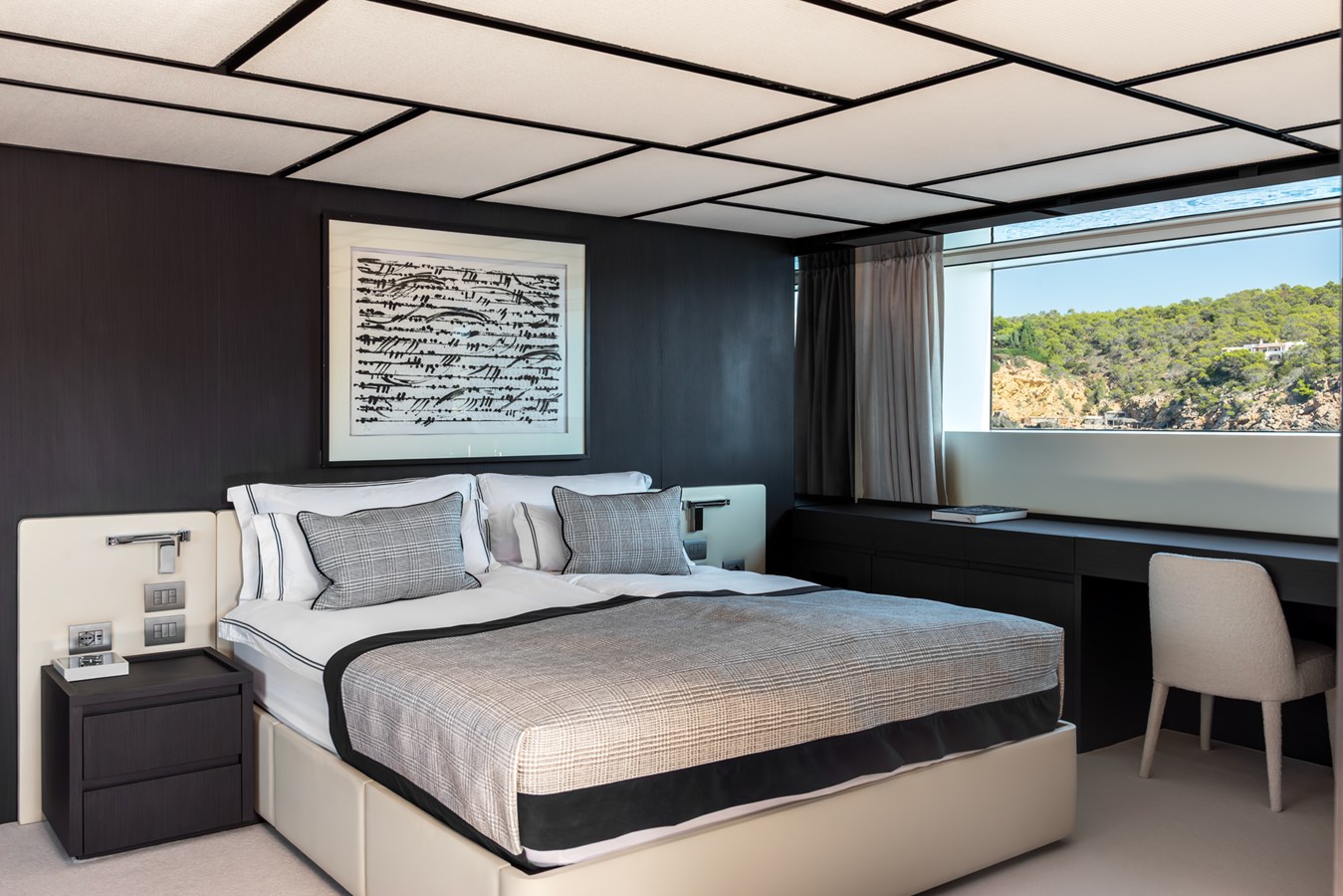 With the ability to accommodate up to 10 guests in 5 beautifully designed cabins, the SD118 ensures comfort and privacy at sea. The owner's suite , located on the main deck, offers a full-beam layout with panoramic windows and a lavish en-suite bathroom. Below deck, the guest cabins offer equally luxurious accommodations, with ample space and elegant décor.