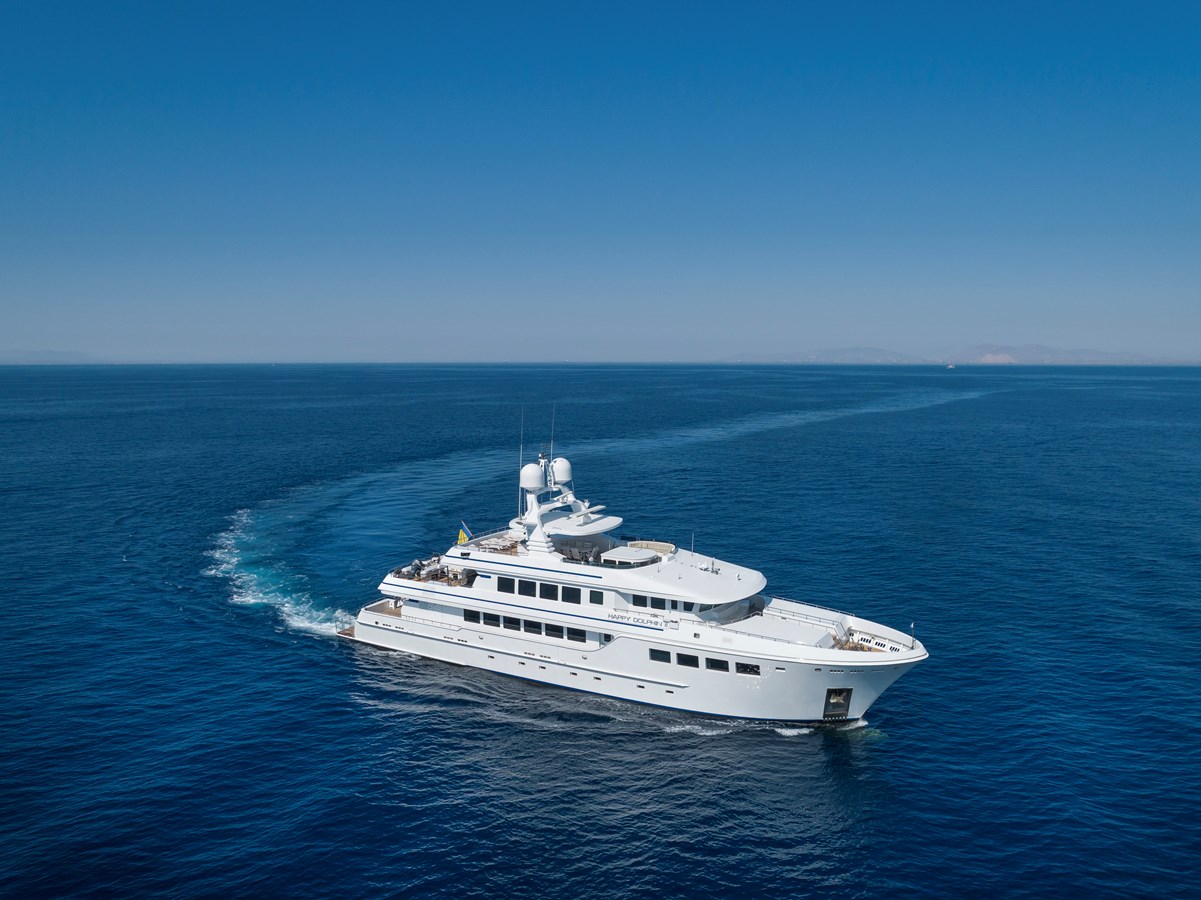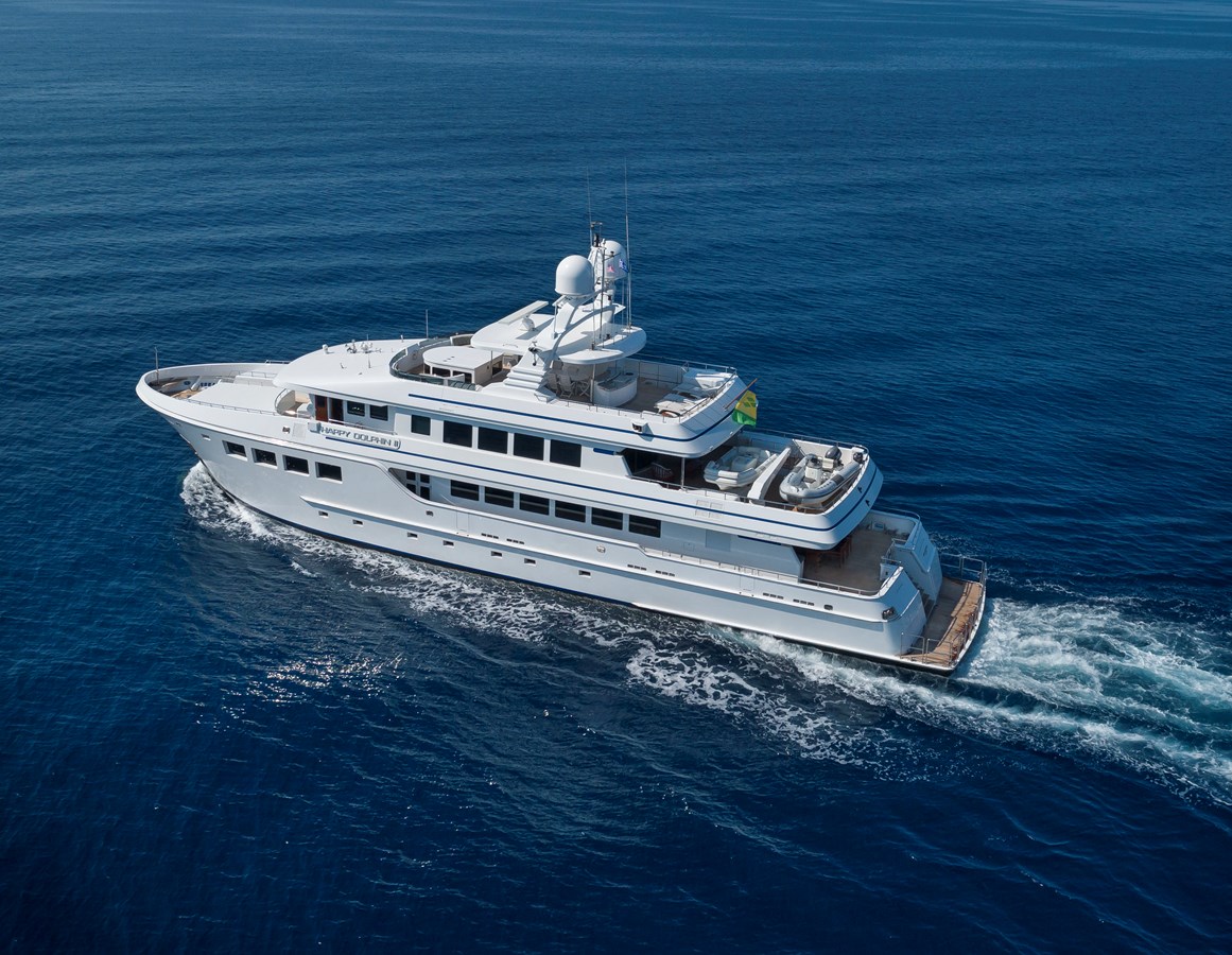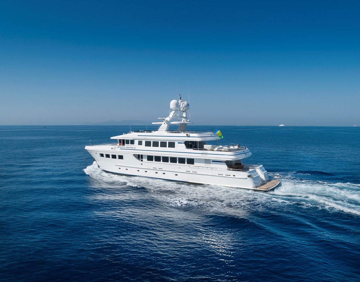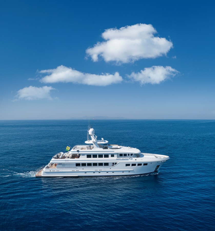 Happy Dolphin II is a 39.65-meter displacement yacht distinguished by her generous volume, solid build, and timeless style. Delivered in 2004 and refitted in 2024 she can accommodate 11 guests in 5 cabins. Inside, her design balances traditional elegance with modern comfort, offering expansive decks, a full-beam master suite on the main deck, and a bright interior illuminated by large windows.