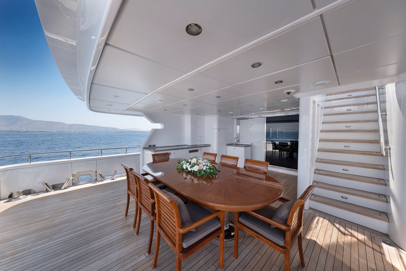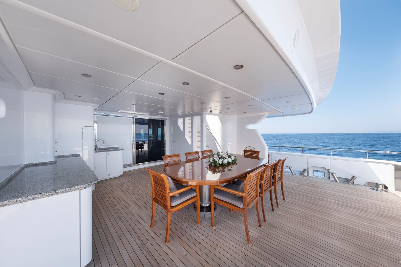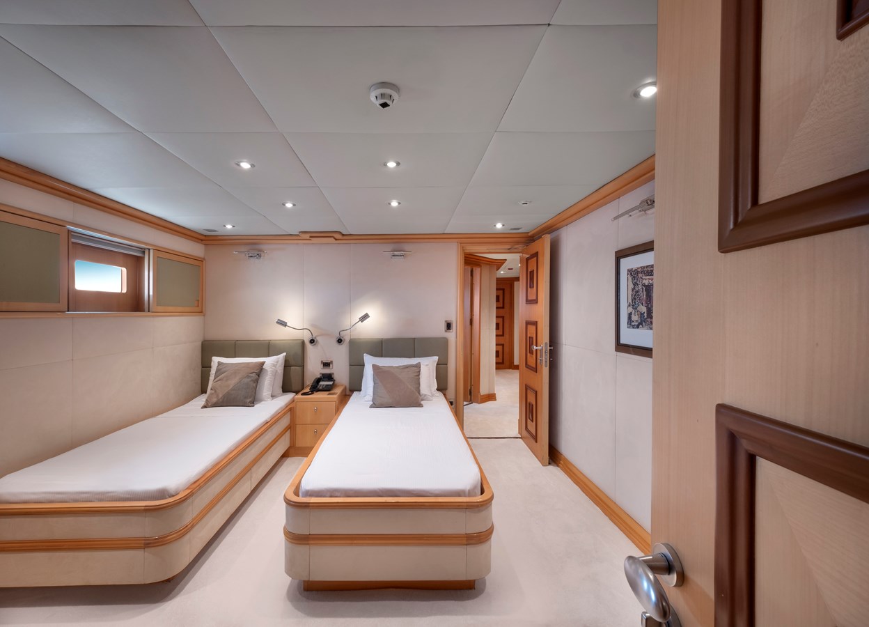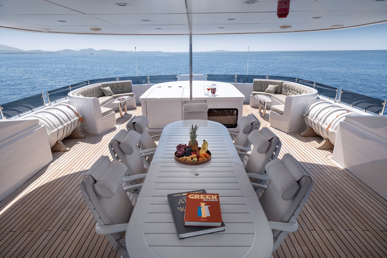 Happy Dolphin II is a 39.65-meter displacement yacht distinguished by her generous volume, solid build, and timeless style. Delivered in 2004 and refitted in 2024 she can accommodate 11 guests in 5 cabins. Inside, her design balances traditional elegance with modern comfort, offering expansive decks, a full-beam master suite on the main deck, and a bright interior illuminated by large windows.