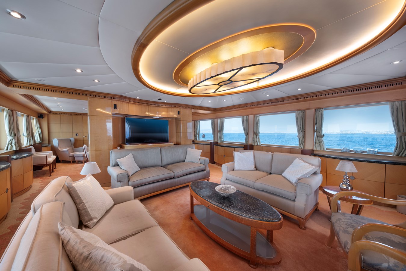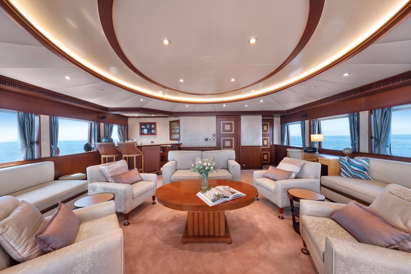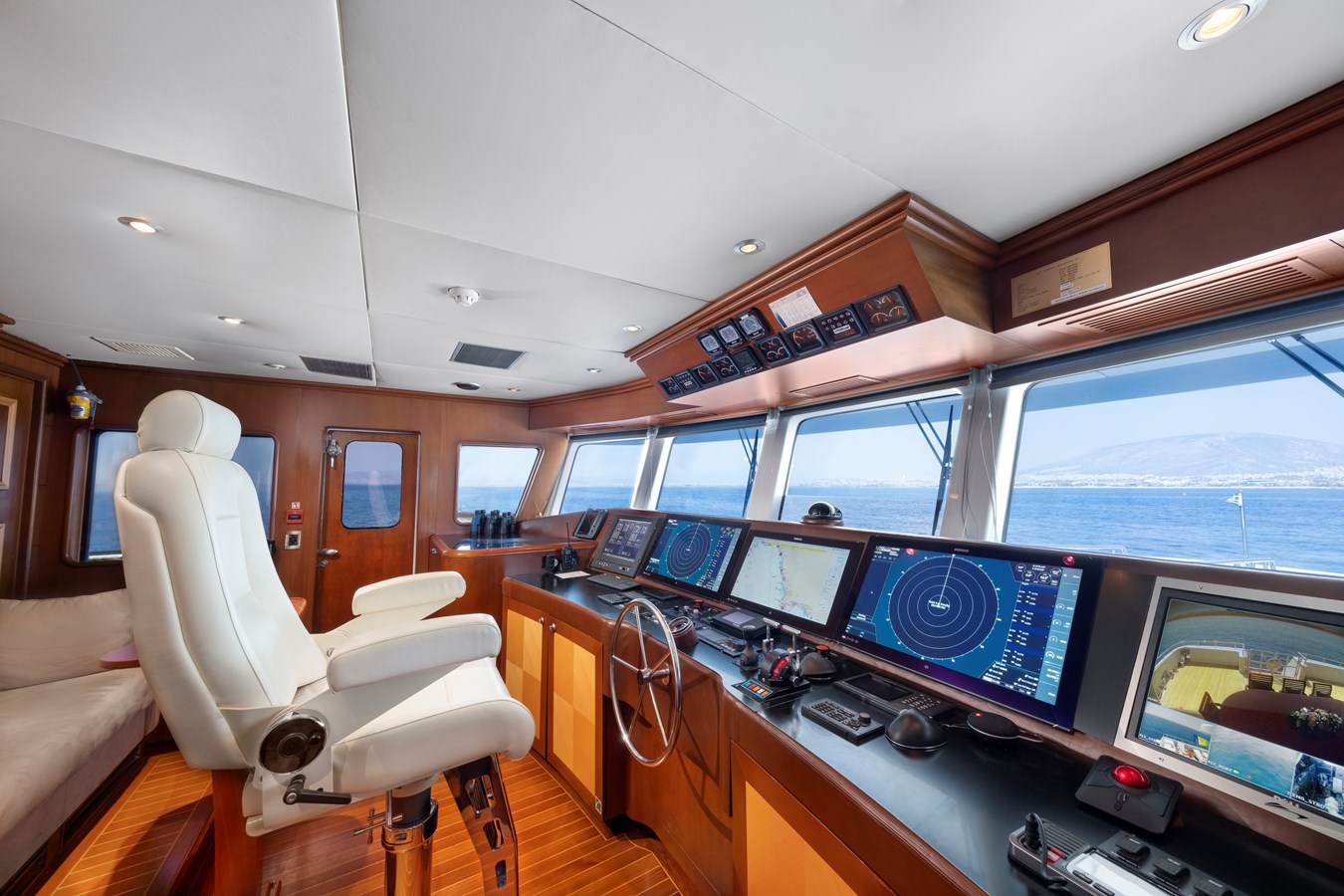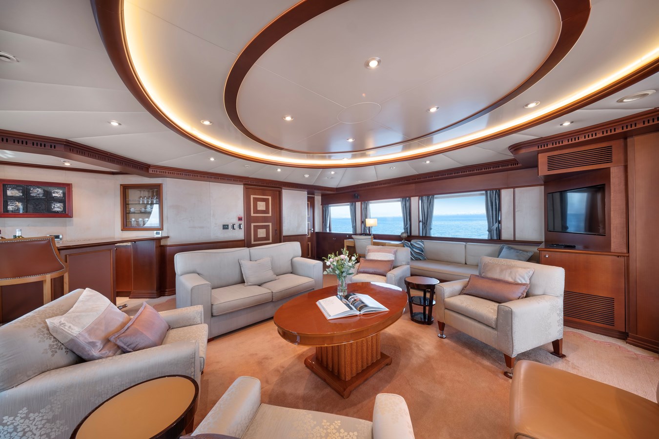 Happy Dolphin II is a 400 GT displacement yacht distinguished by her generous volume, solid build, and timeless style. Still under originally ownership, she has benefitted from consistent care, investment, and the dedication of a long-serving crew. Inside, her design balances traditional elegance with modern comfort, offering expansive decks, a full-beam master suite on the main deck, and a bright interior illuminated by large windows.