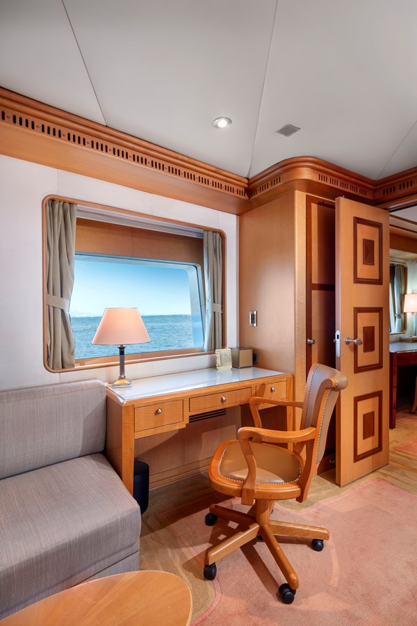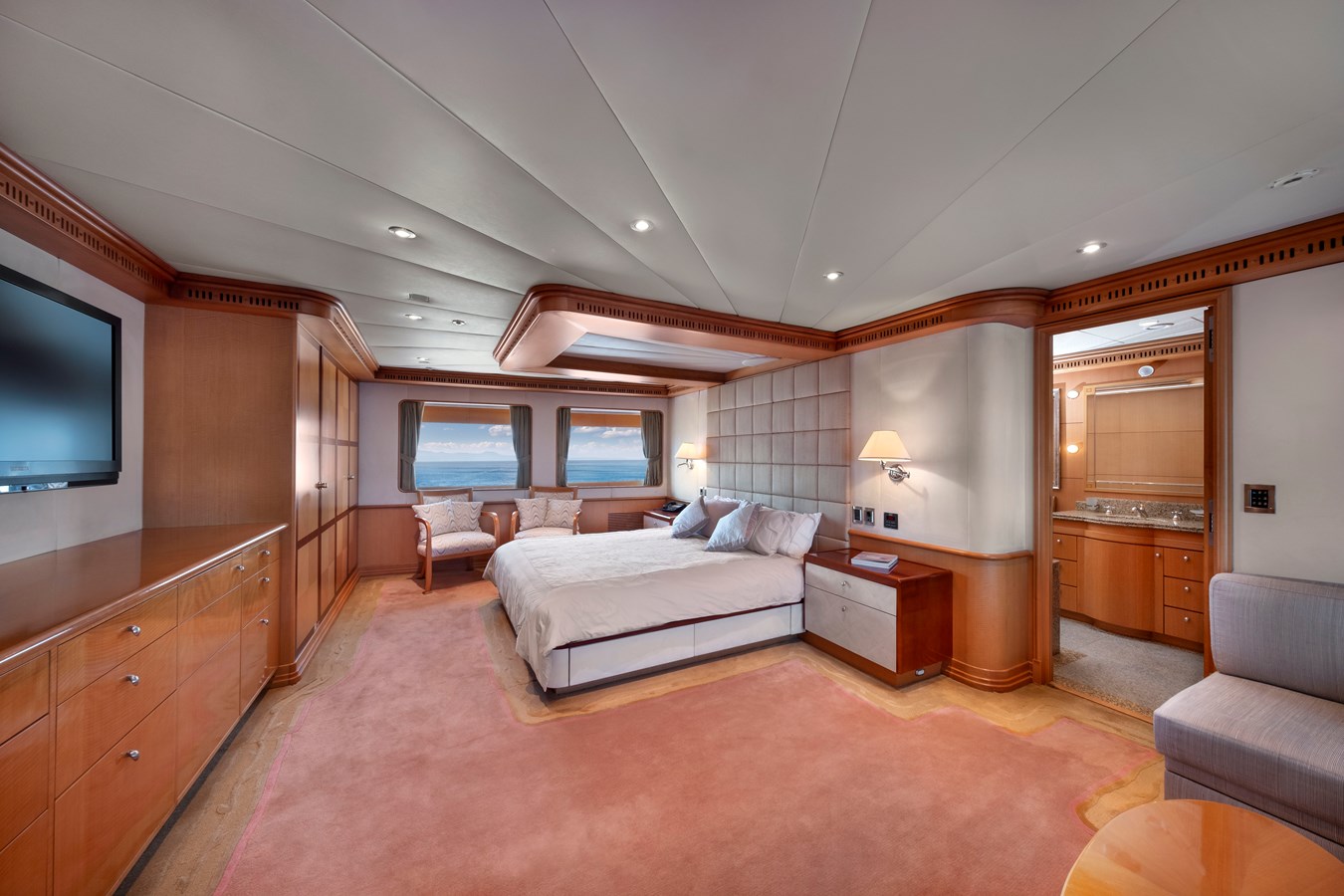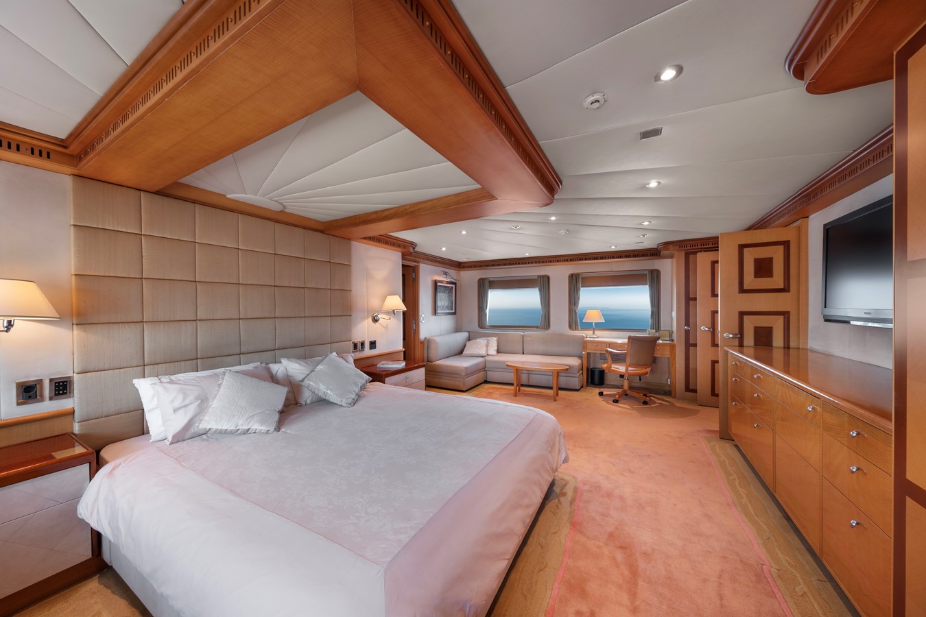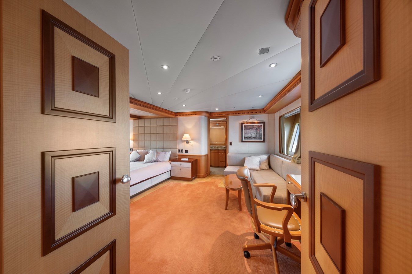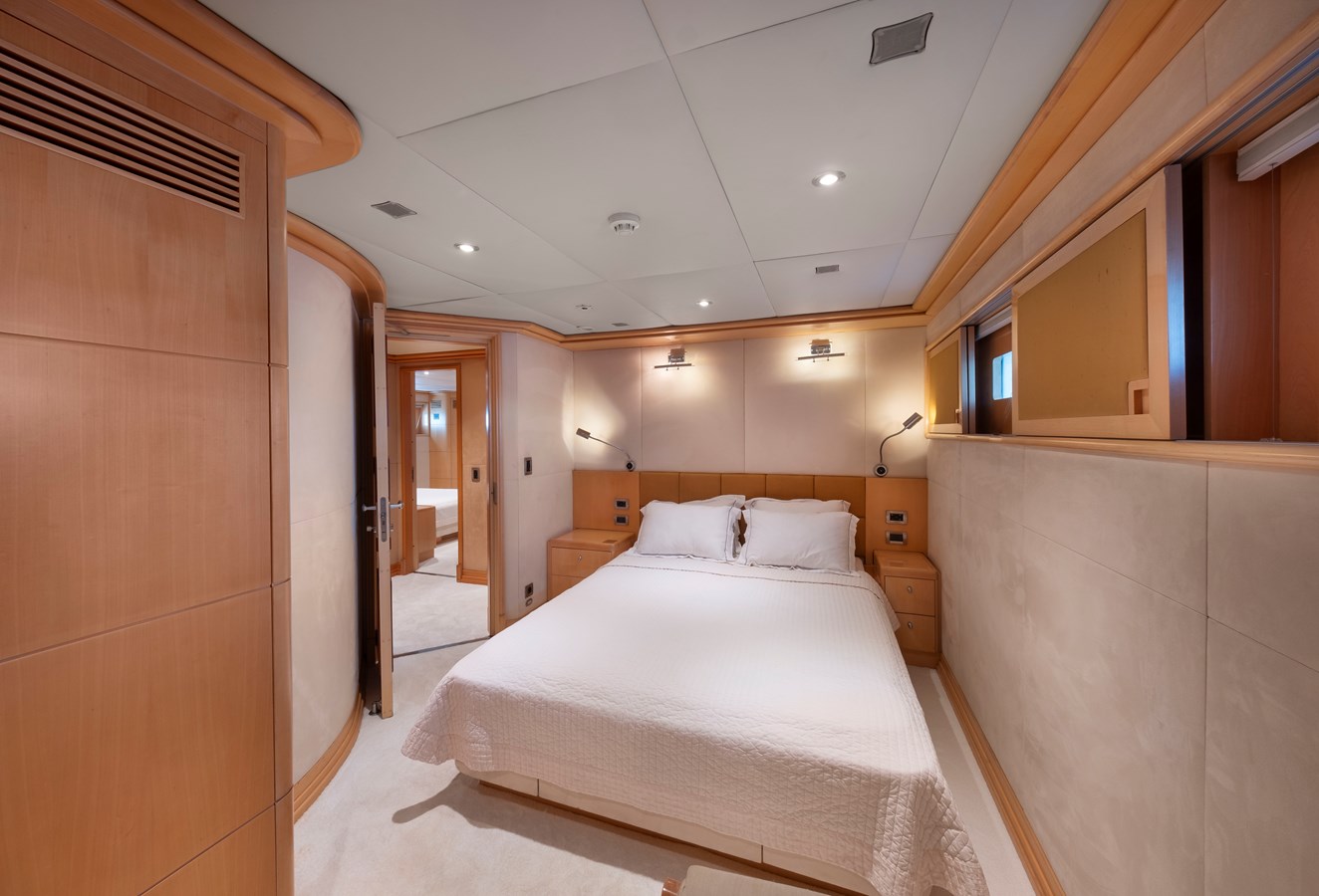 Happy Dolphin II is a 400 GT displacement yacht distinguished by her generous volume, solid build, and timeless style. Still under originally ownership, she has benefitted from consistent care, investment, and the dedication of a long-serving crew. Inside, her design balances traditional elegance with modern comfort, offering expansive decks, a full-beam master suite on the main deck, and a bright interior illuminated by large windows.