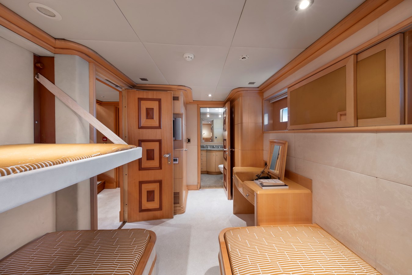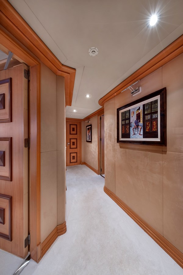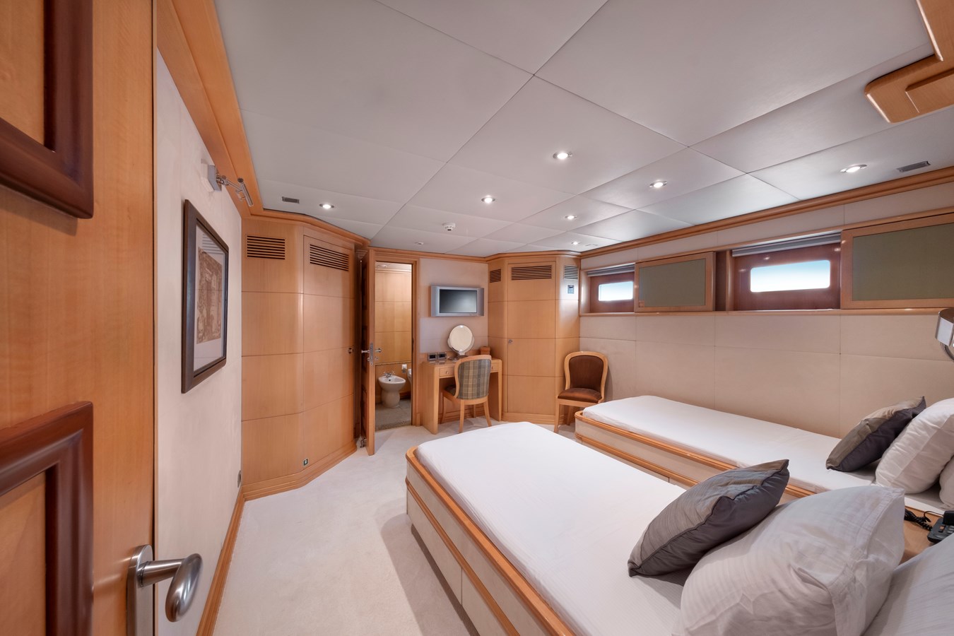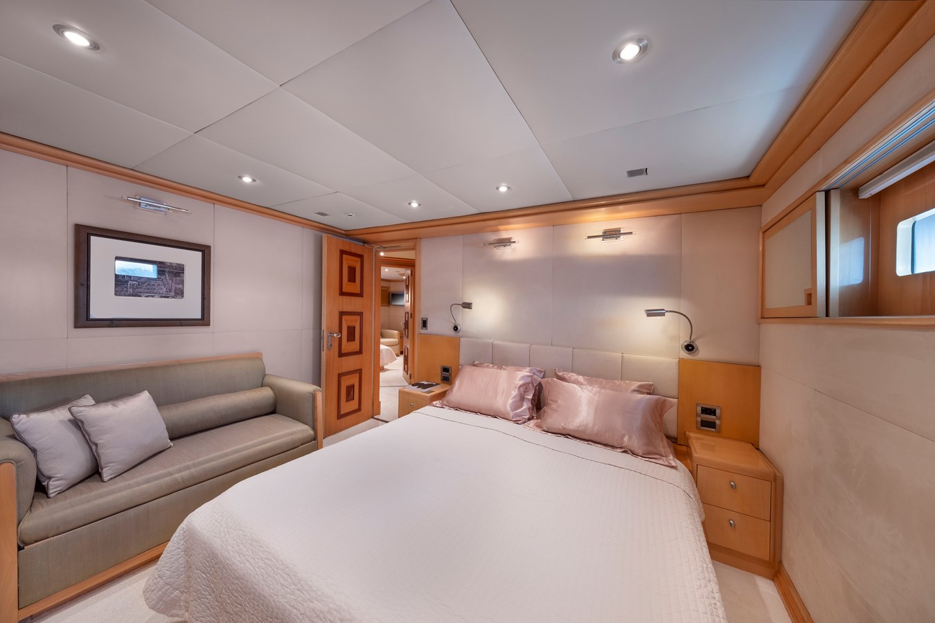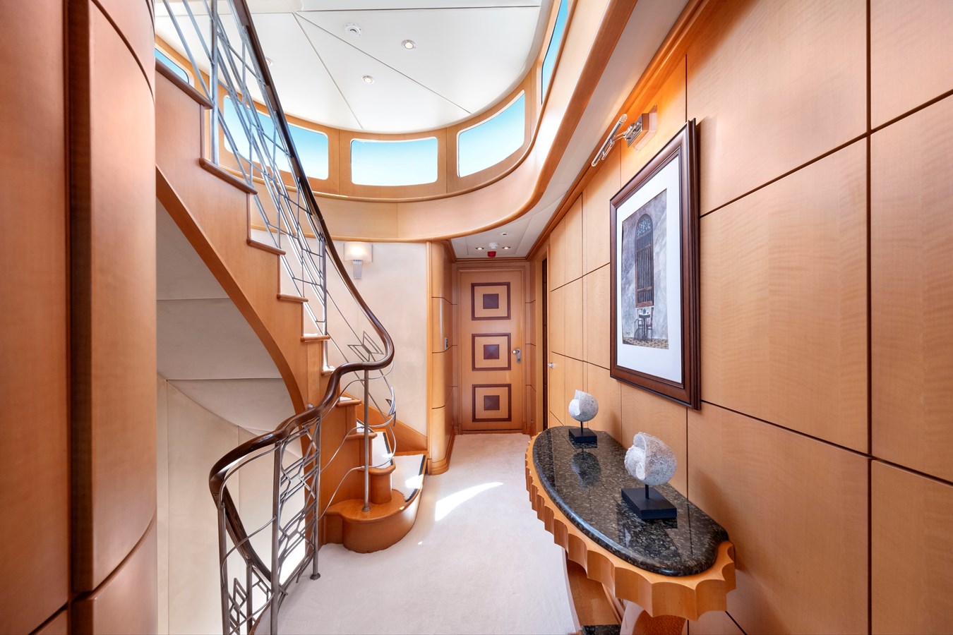 Happy Dolphin II is a 400 GT displacement yacht distinguished by her generous volume, solid build, and timeless style. Still under originally ownership, she has benefitted from consistent care, investment, and the dedication of a long-serving crew. Inside, her design balances traditional elegance with modern comfort, offering expansive decks, a full-beam master suite on the main deck, and a bright interior illuminated by large windows.