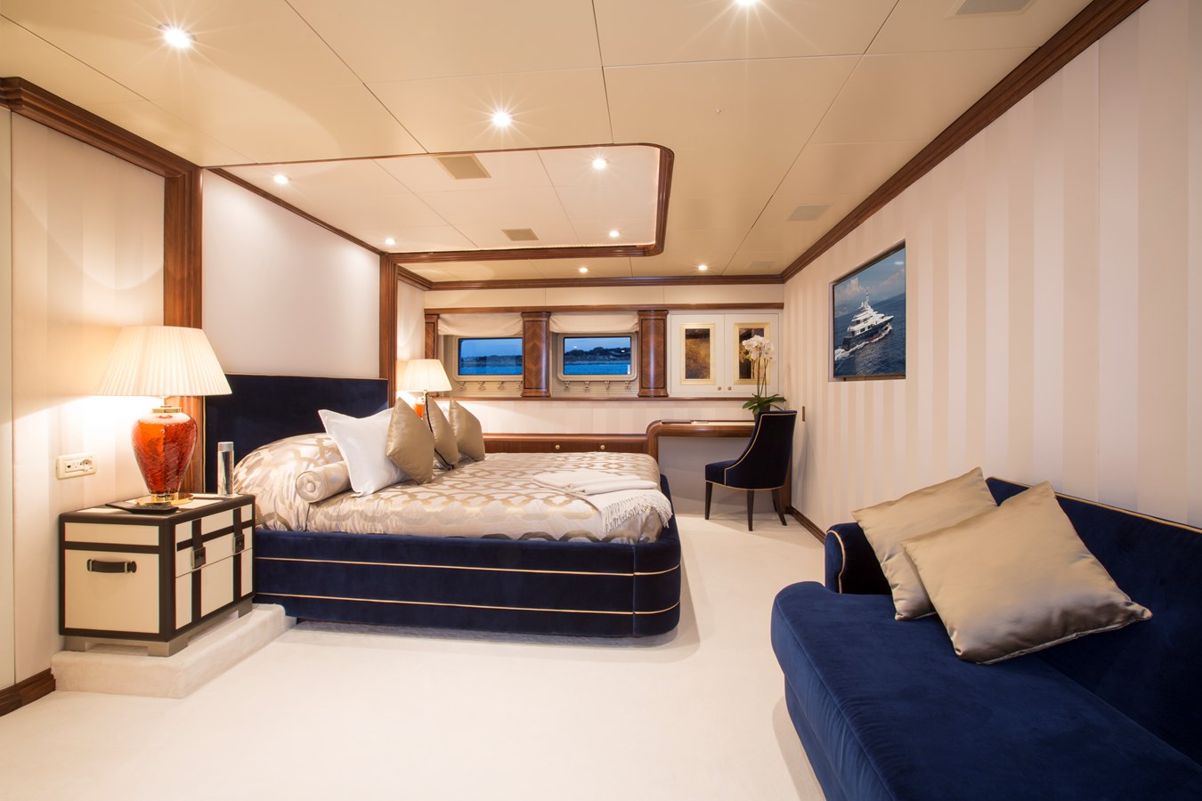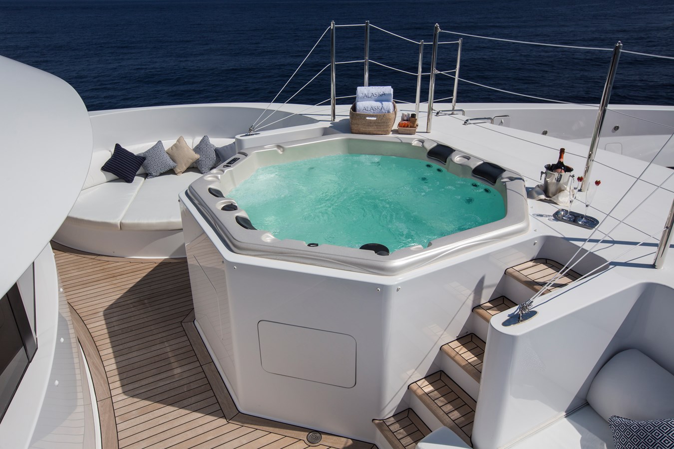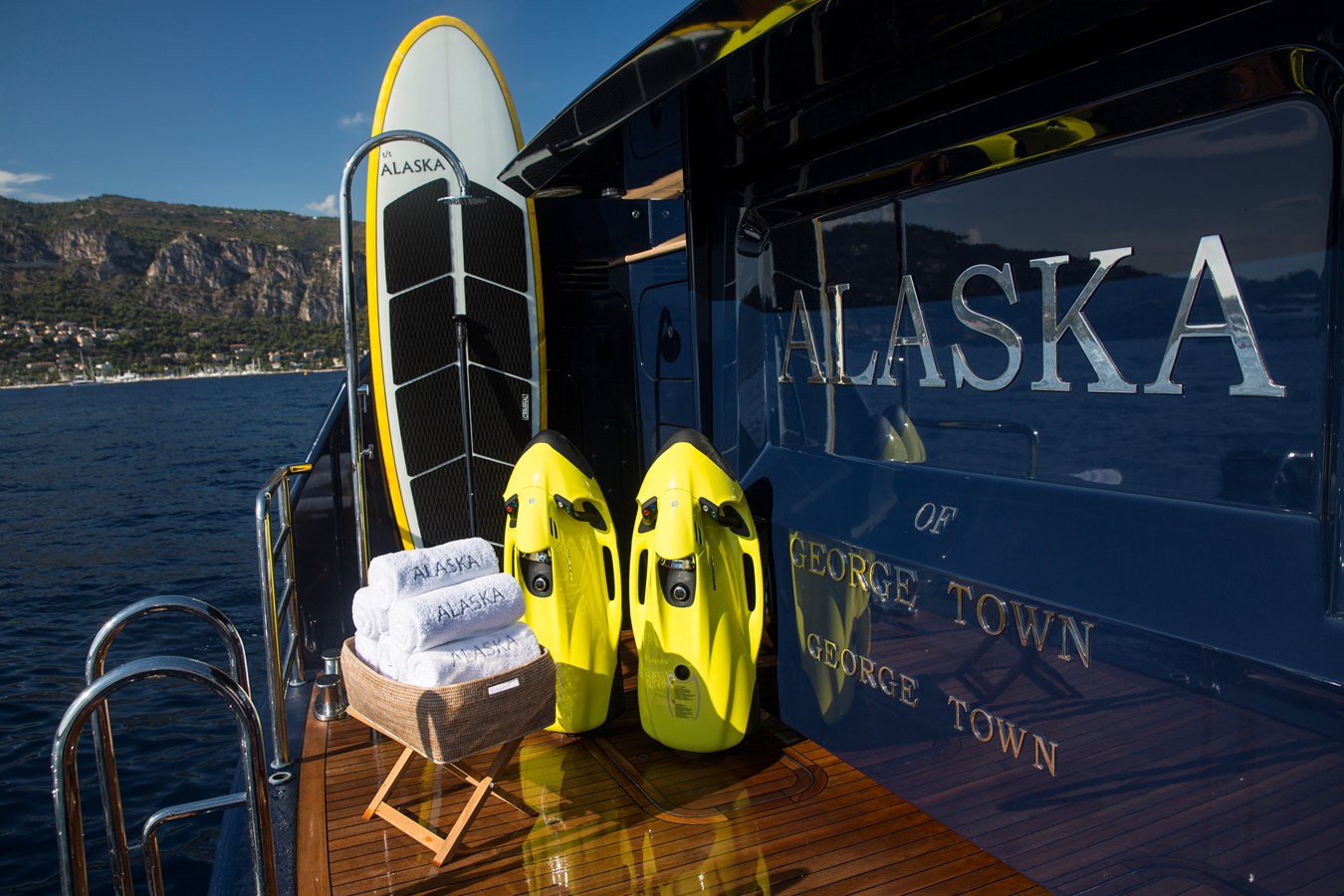 "The ALASKA OF GEORGE TOWN, with its resounding length of 44-meters, represents an incredible feat of all-aluminum superyacht engineering constructed by the competent ShipWorks Brisbane. It bears the signature of the distinguished Burness Corlett Three Quays in its naval design. The yacht is a perfect amalgamation of classic design and substantial travel range. Her profile and interiors, conceived by Bernie Cohen, were trailblazers of their time. Her noteworthy Gross Tonnage of 457 gives ALASKA OF GEORGE TOWN remarkable interior space, tagging her as one of the top value offerings in the yachting market at just slightly more than USD 14,100 per GT - an unequaled bargain. Her expansive design includes a broad-beam owner's suite on the main deck, having its private access to a terrace equipped with a hot tub. The lower deck houses a spacious VIP stateroom that spans full-beam width, along with two more guest rooms. An additional fifth guest room or staff cabin is smartly located on the bridge deck, providing added discretion and adaptability for family requirements, staff housing, or for chartering purposes."