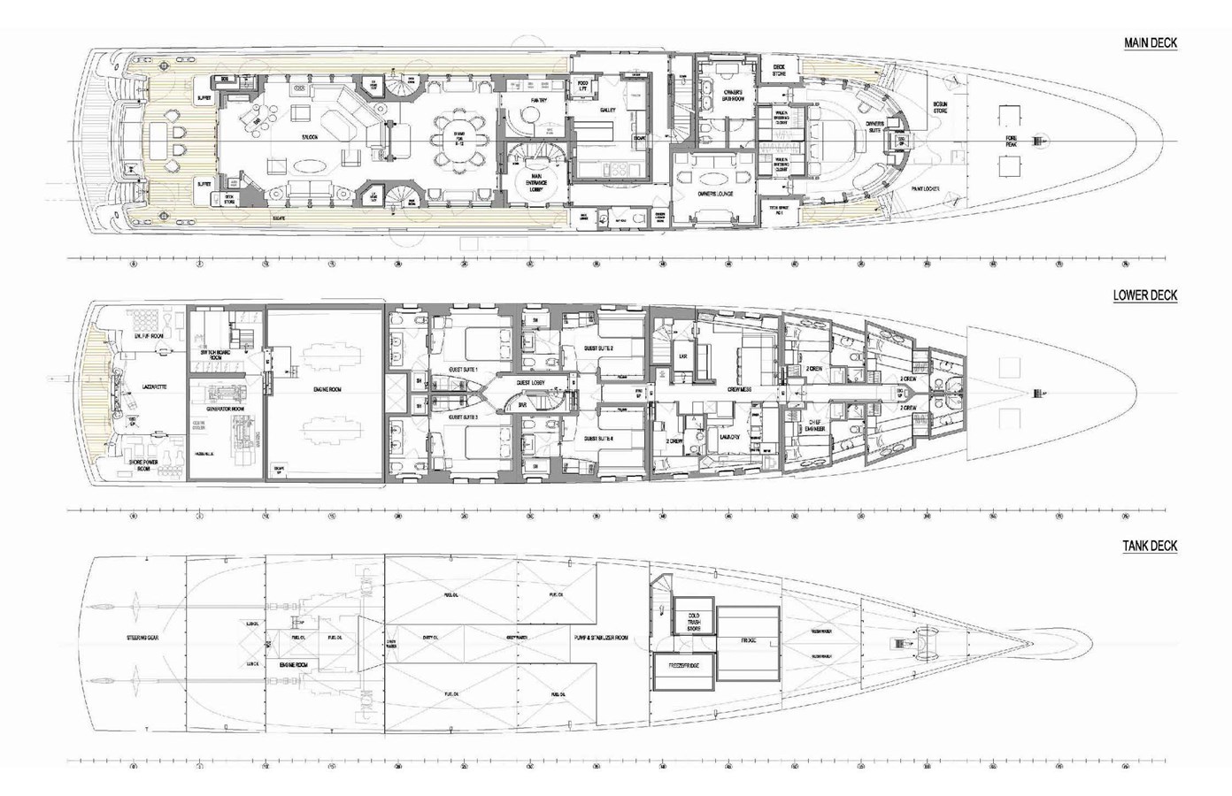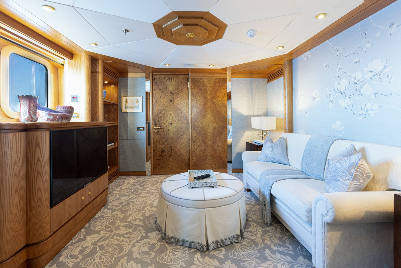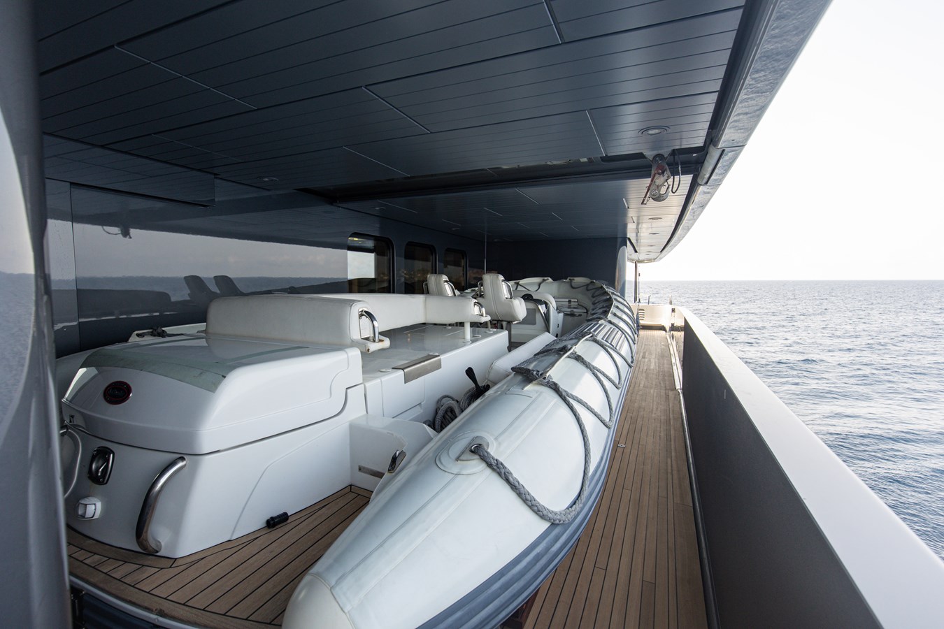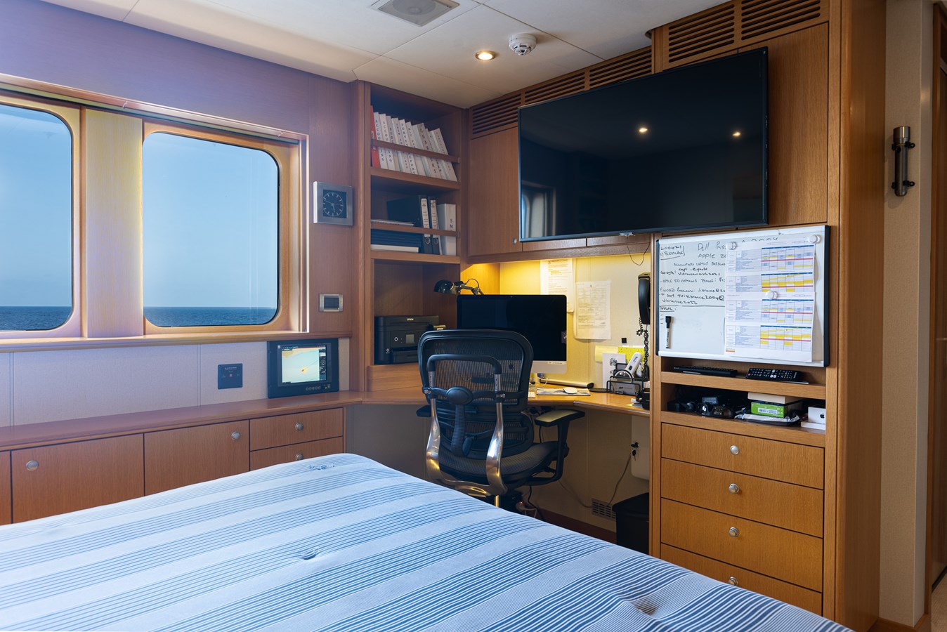 The spacious master cabin has its own private interior lounge and exterior seating via private entrance. Tenders are stowed on bridge deck mid-ship out of the way from guest spaces. With a full displacement hull and a large gross tonnage of 659 tonnes, she extremely comfortable and quiet underway.