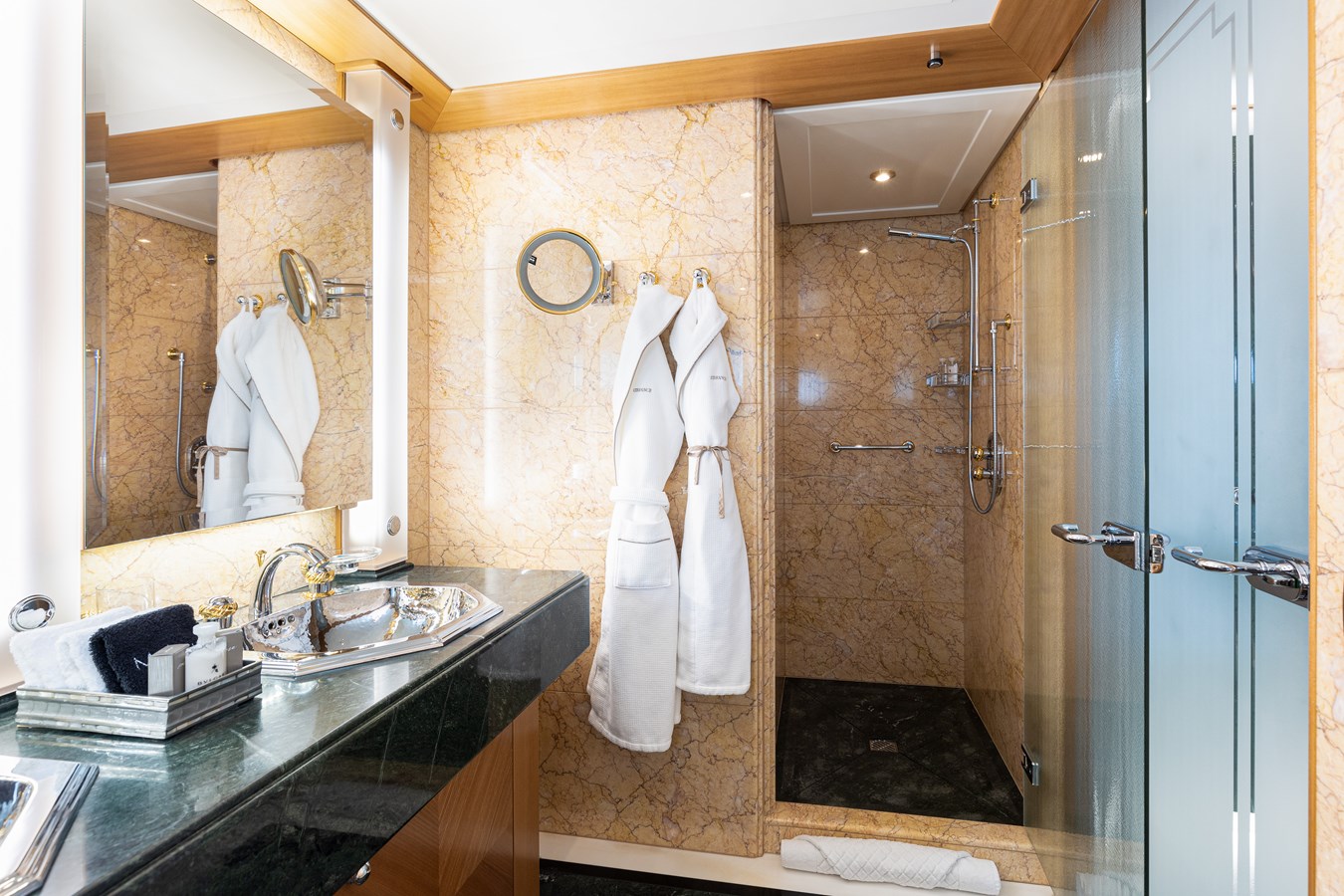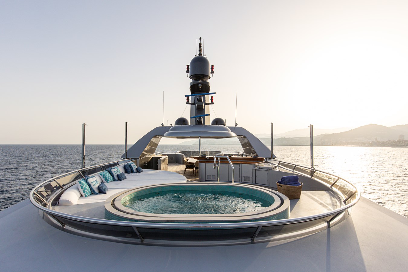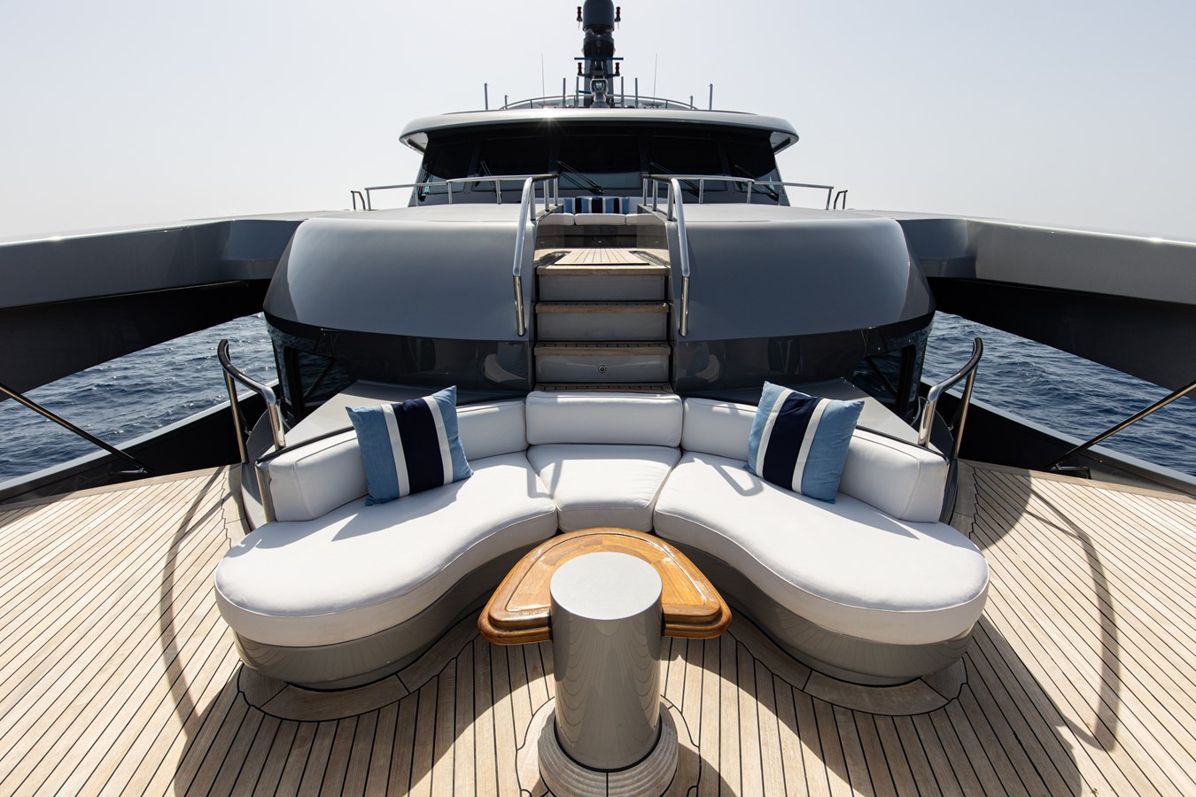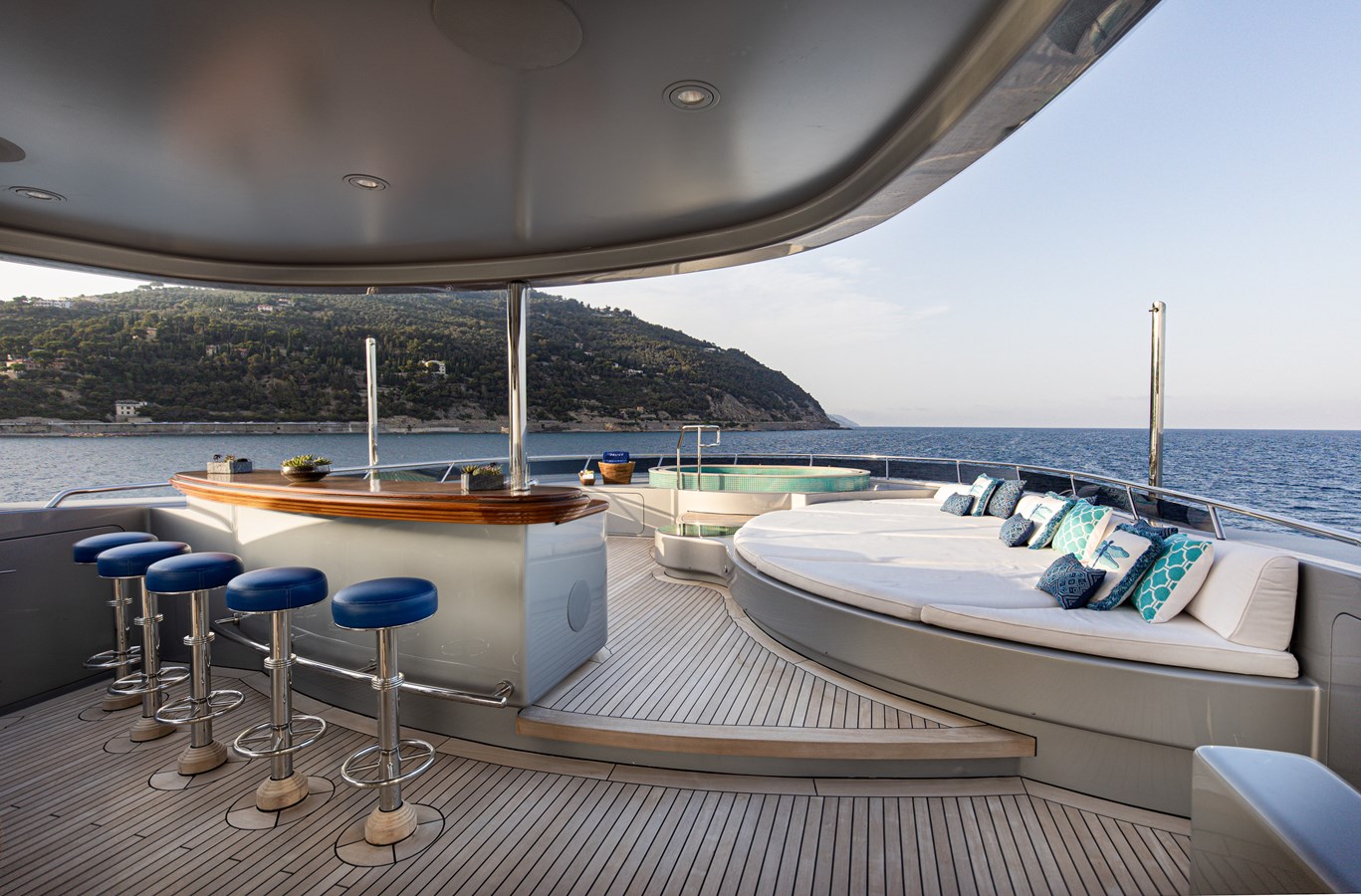 The spacious master cabin has its own private interior lounge and exterior seating via private entrance. Tenders are stowed on bridge deck mid-ship out of the way from guest spaces. With a full displacement hull and a large gross tonnage of 659 tonnes, she extremely comfortable and quiet underway.