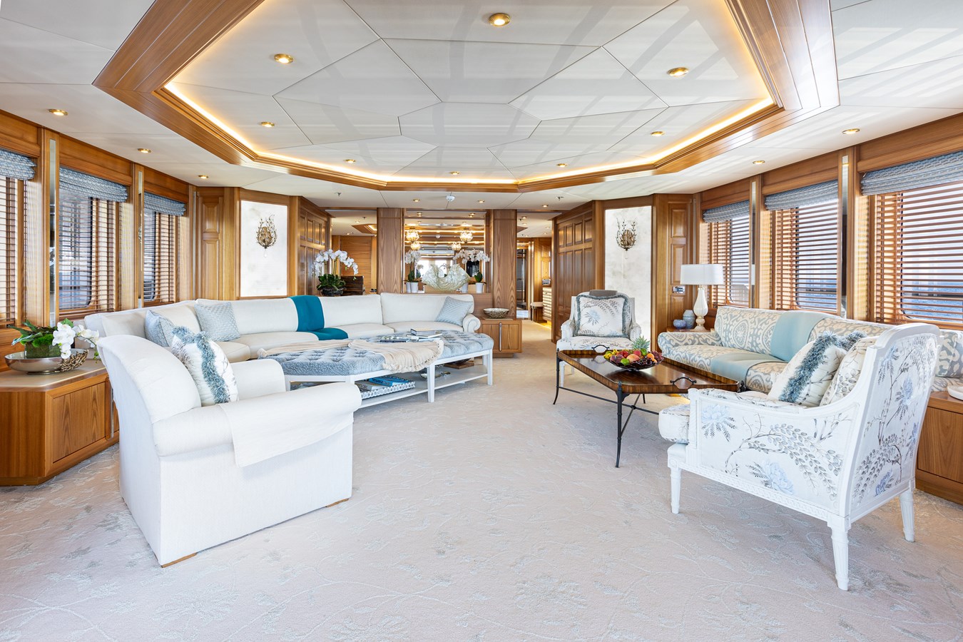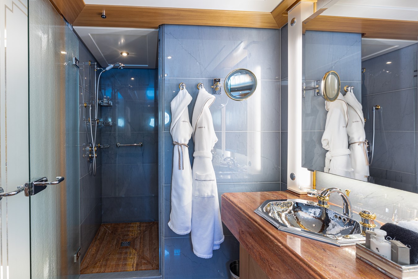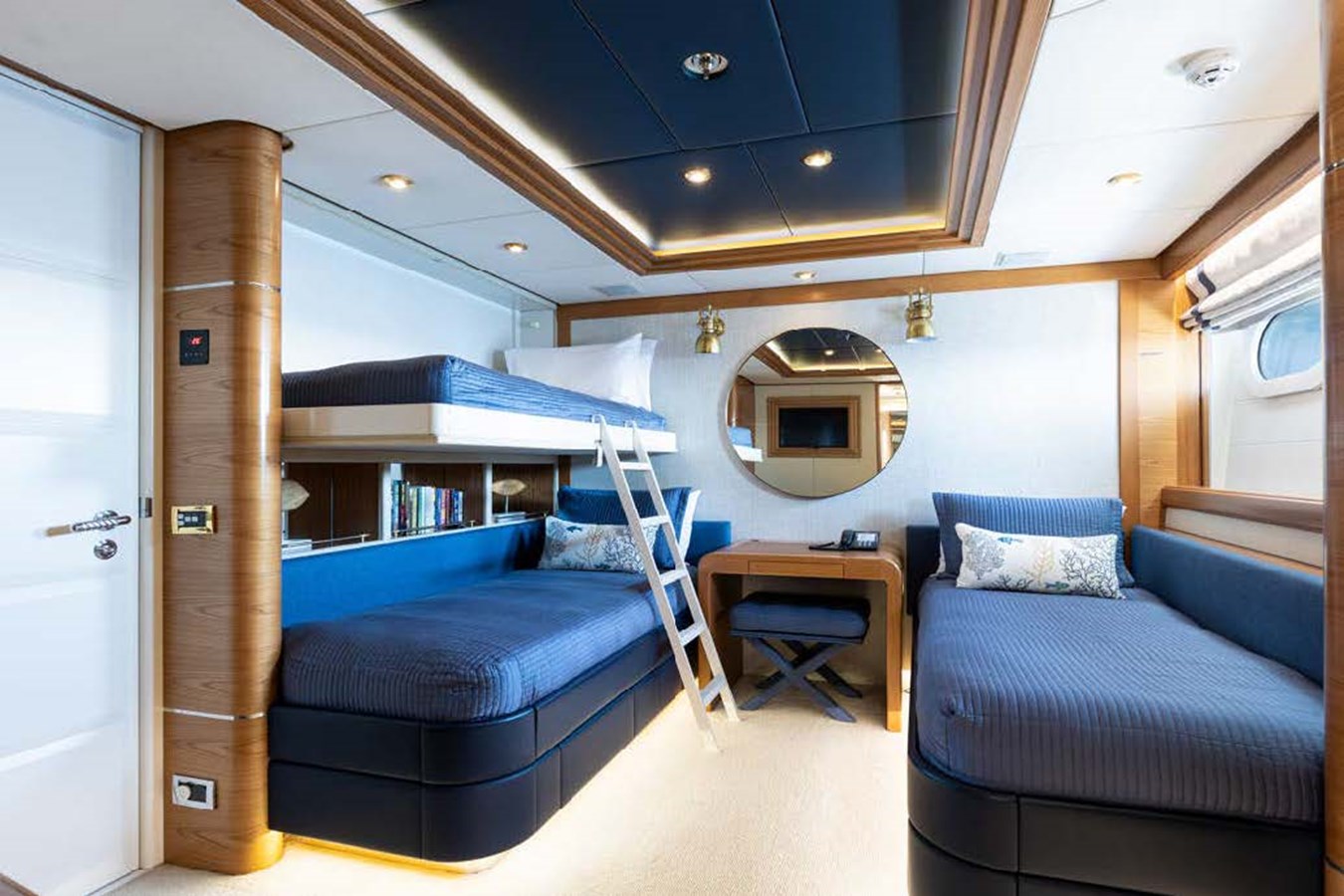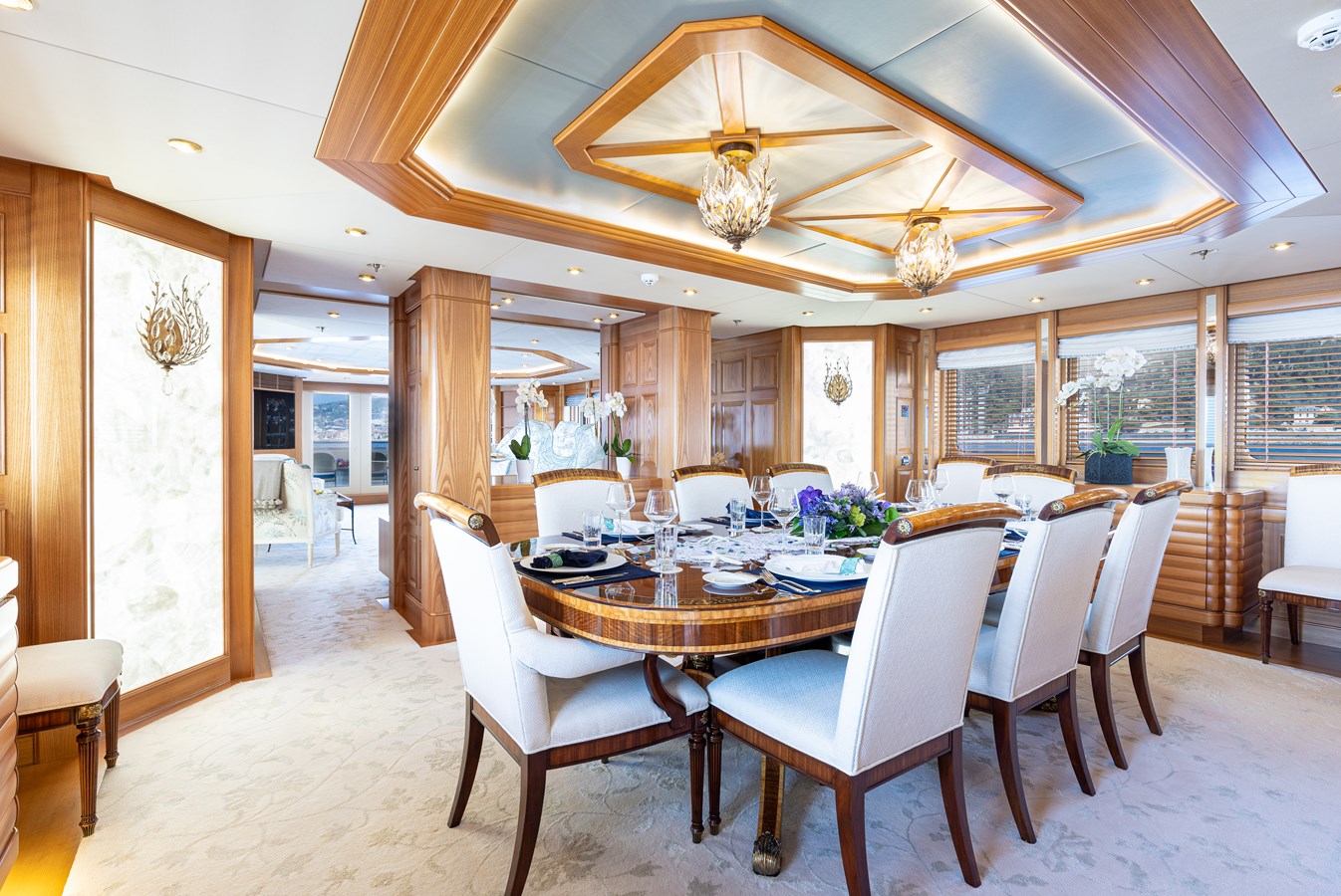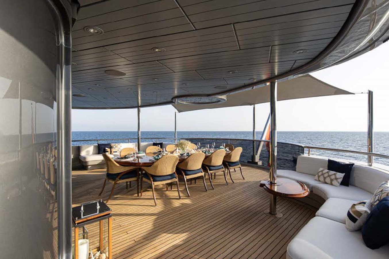 The spacious master cabin has its own private interior lounge and exterior seating via private entrance. Tenders are stowed on bridge deck mid-ship out of the way from guest spaces. With a full displacement hull and a large gross tonnage of 659 tonnes, she extremely comfortable and quiet underway.