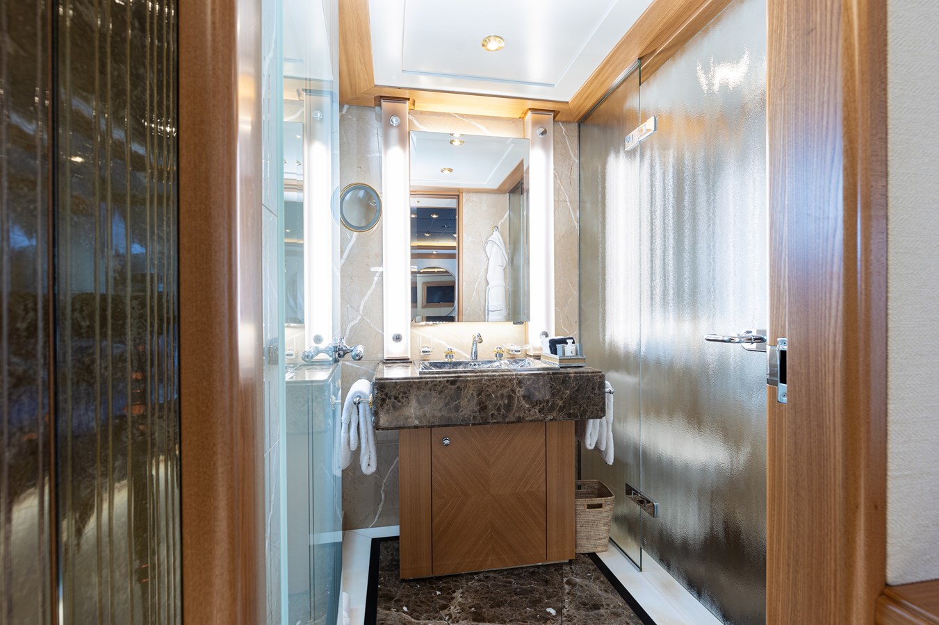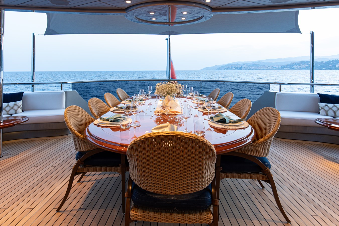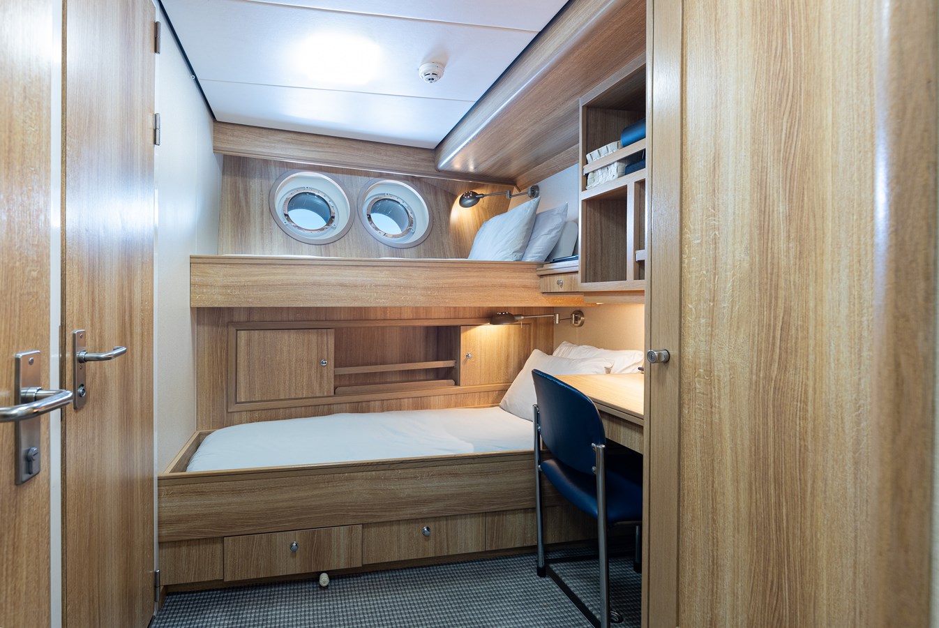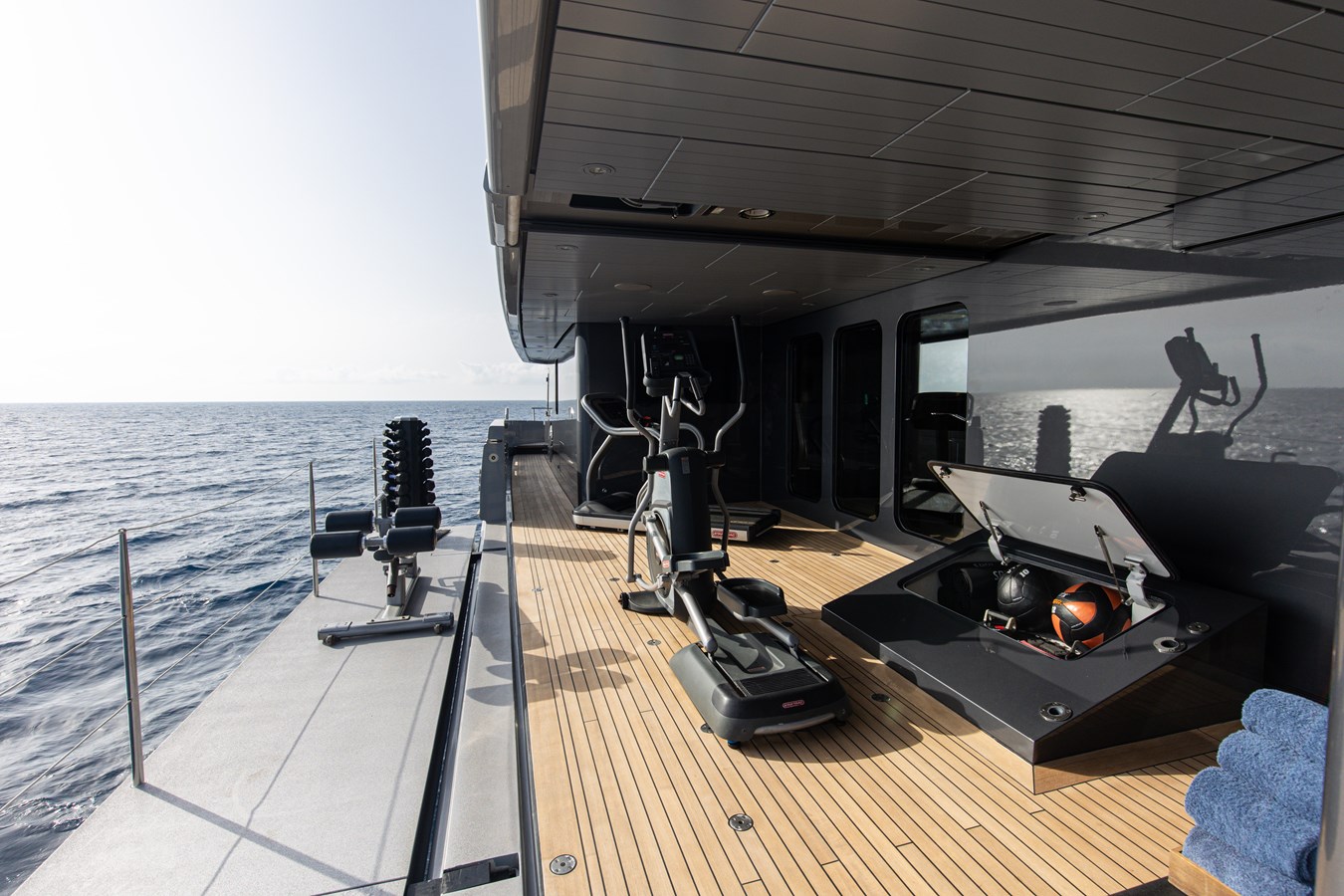The spacious master cabin has its own private interior lounge and exterior seating via private entrance. Tenders are stowed on bridge deck mid-ship out of the way from guest spaces. With a full displacement hull and a large gross tonnage of 659 tonnes, she extremely comfortable and quiet underway.