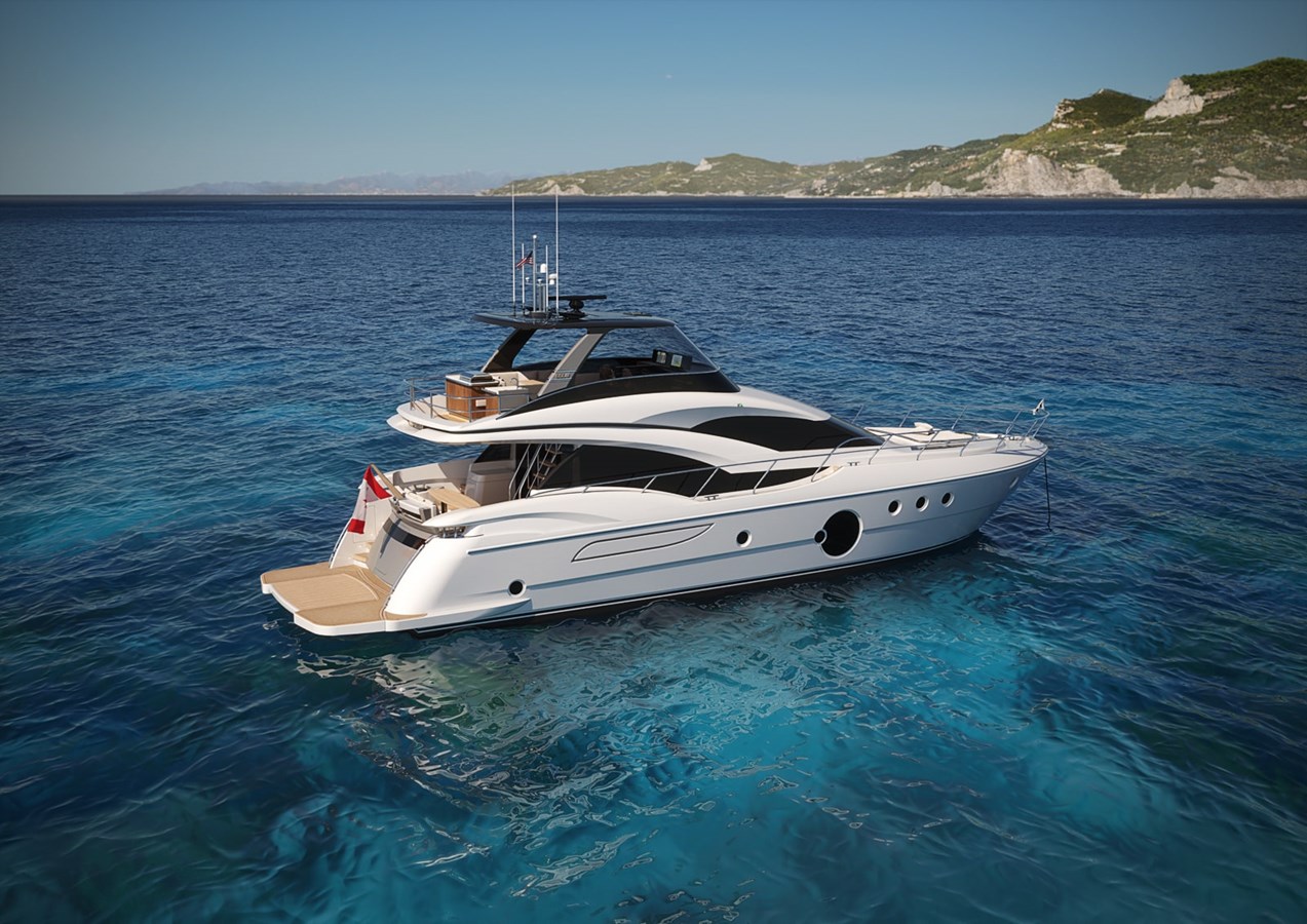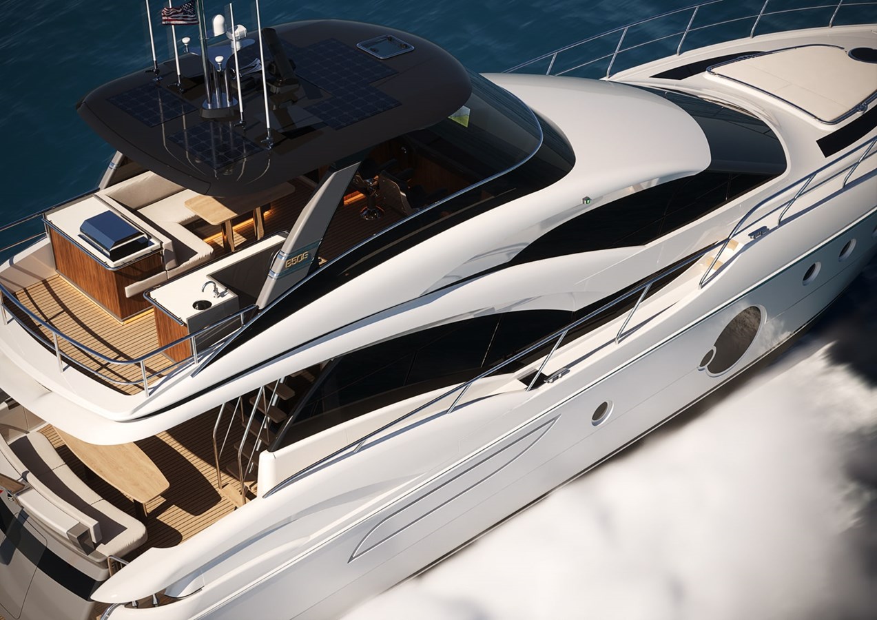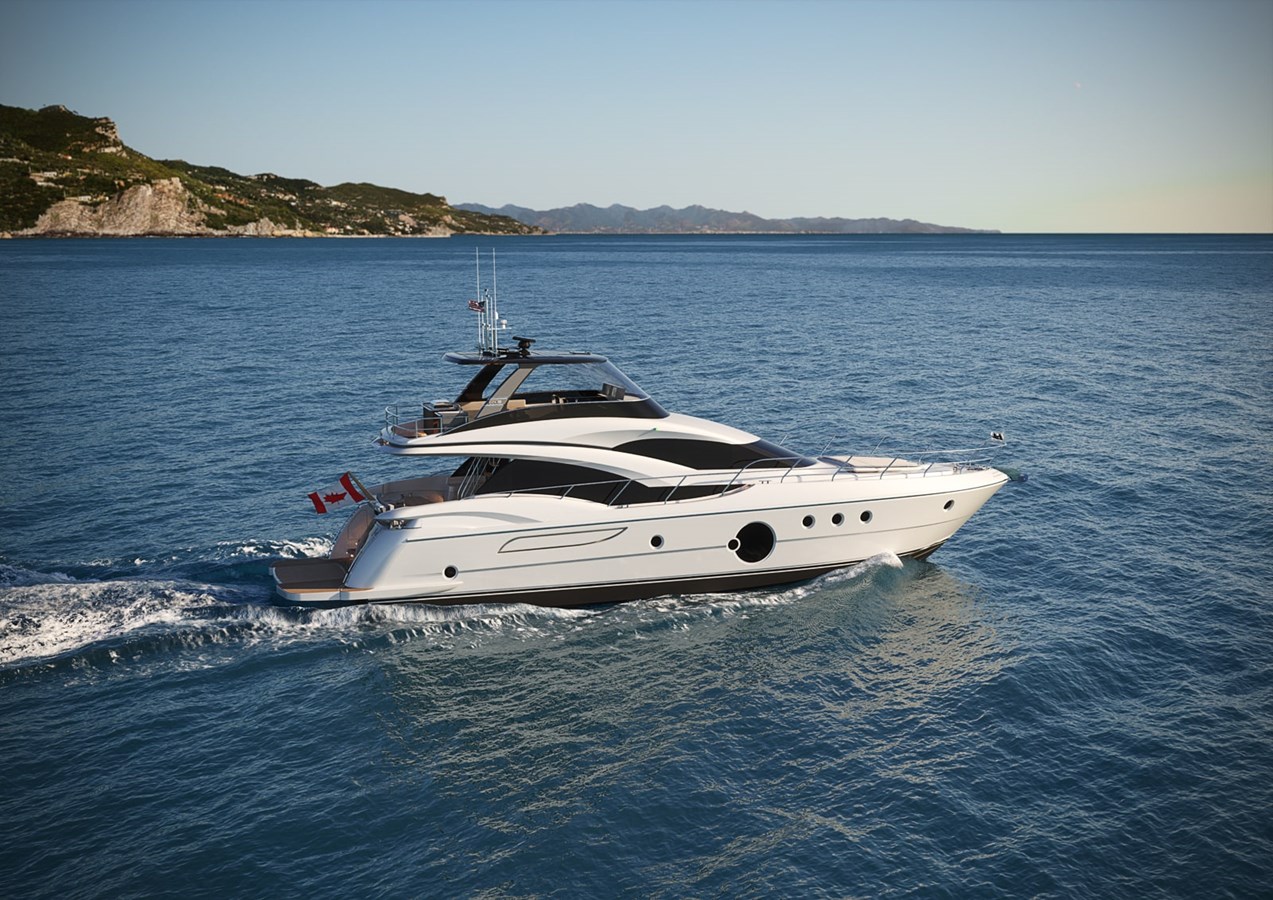 A yacht with downtown distinction inside and out. A new exterior profile with contemporary flowing lines.