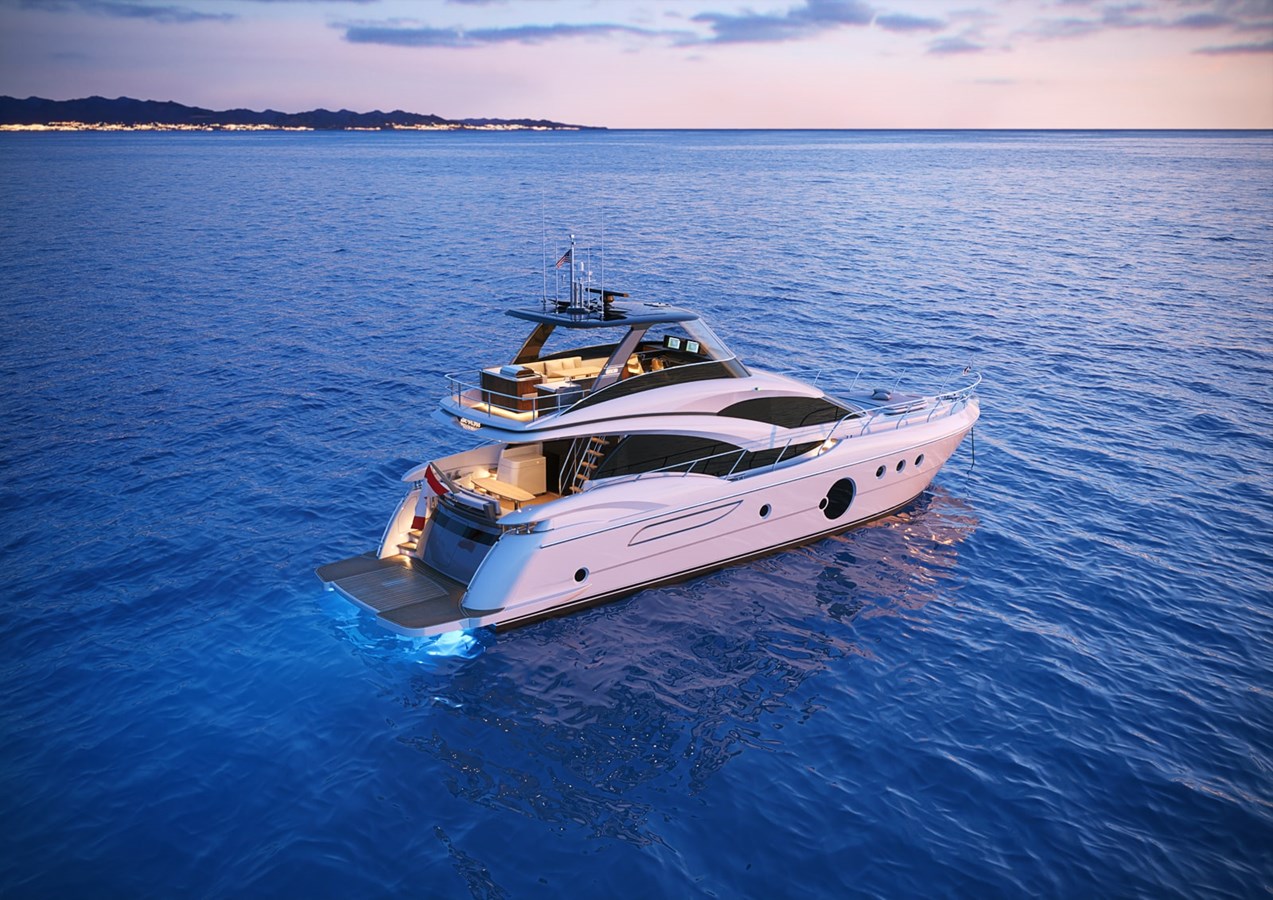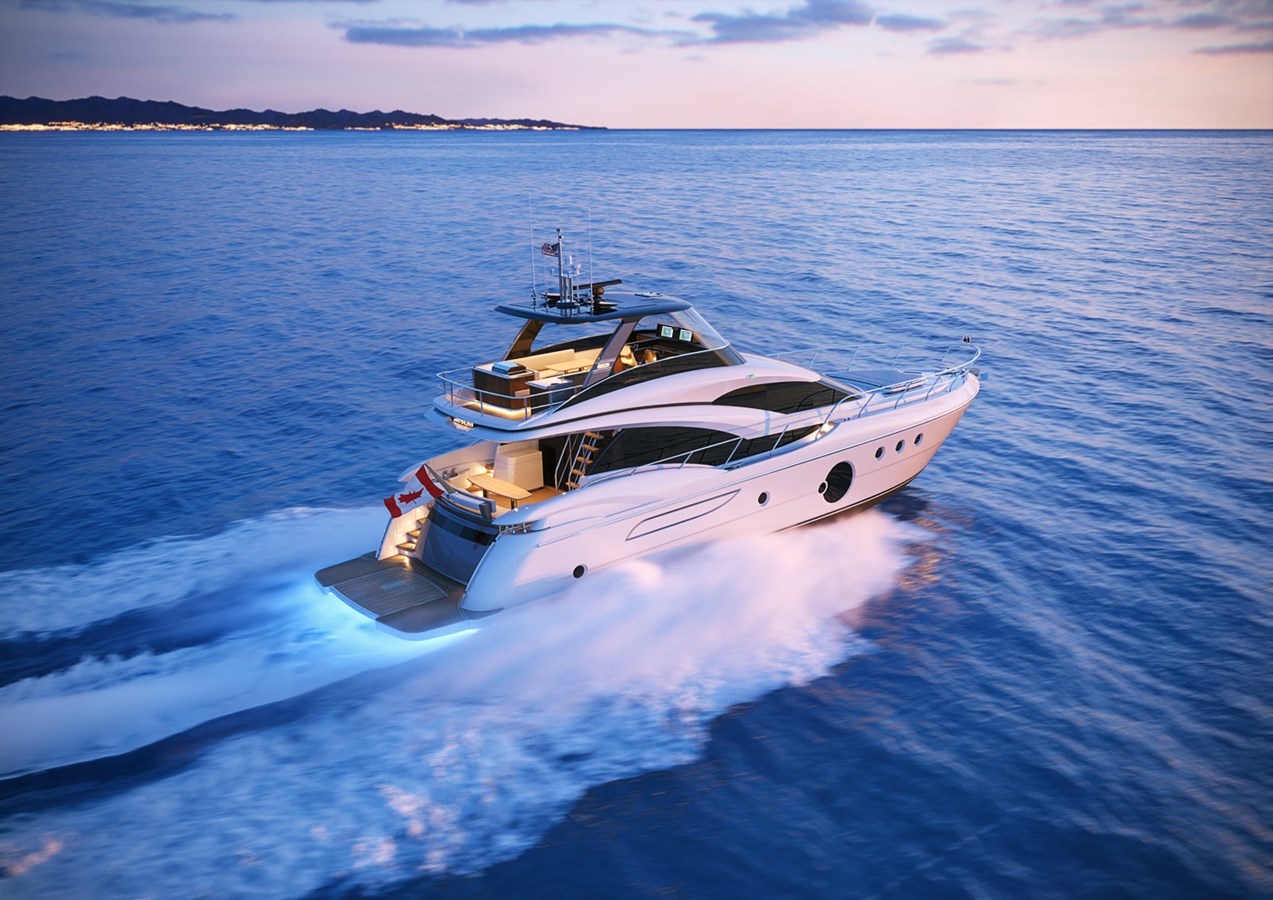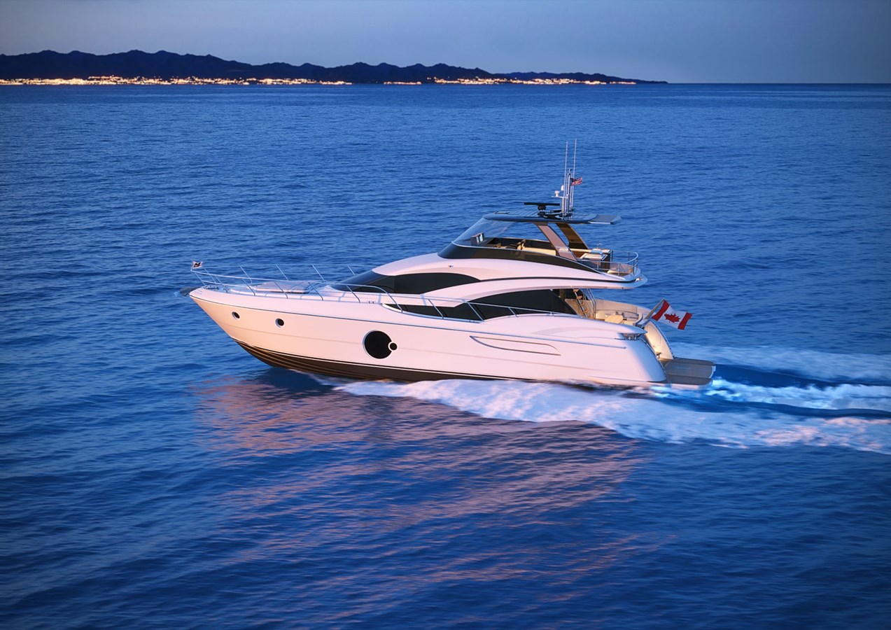 A yacht with downtown distinction inside and out. A new exterior profile with contemporary flowing lines.