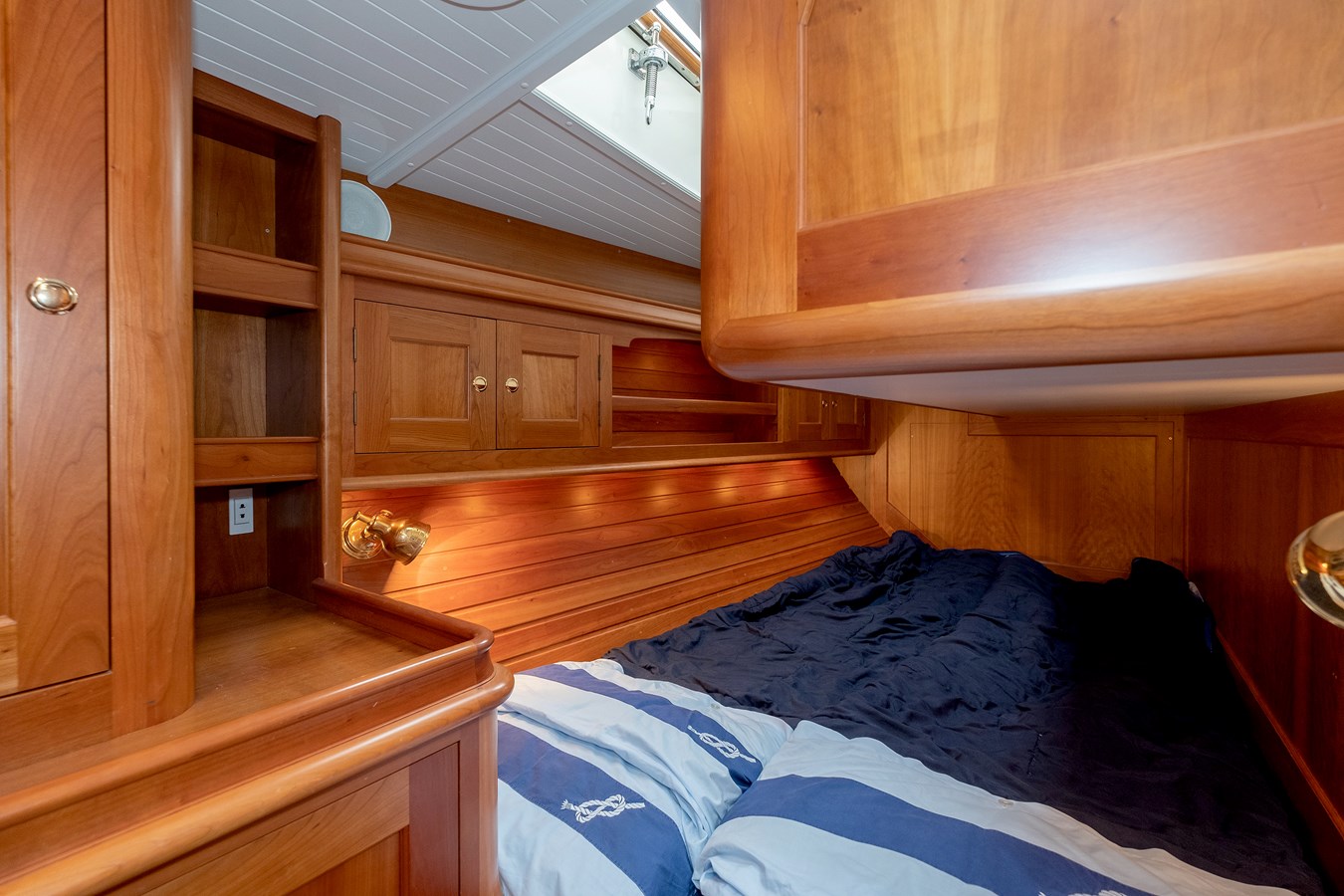 The brief for this first TC 73 to have short-handed sailing capacity was facilitated by her cutter rig with hydraulic furling headsails and hydraulic in-boom furling mainsail. The winches are hydraulically powered, and bow and sternthrusters aid manoeuvring in tight spots. A lift keel arrangement enables shallow water cruising.