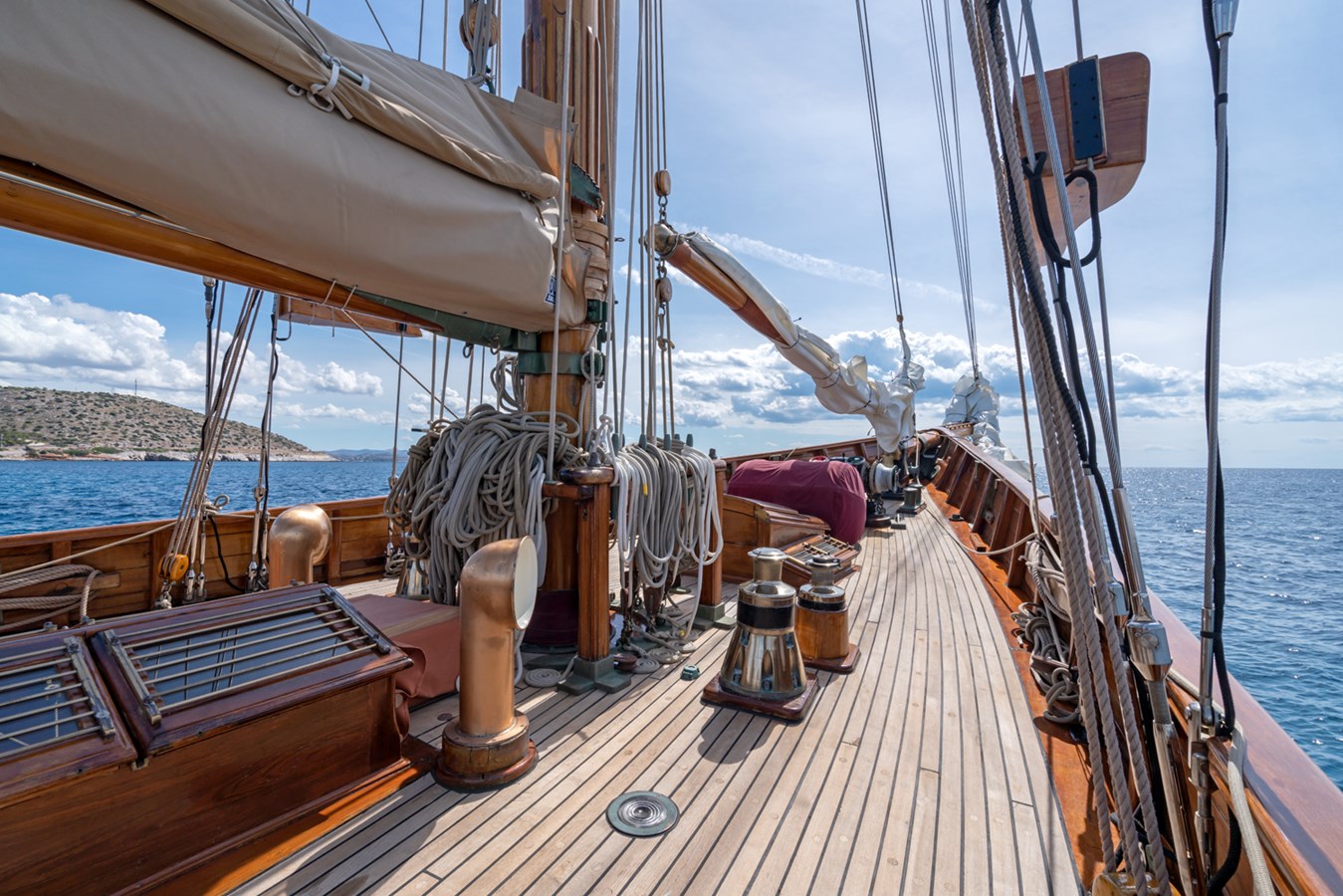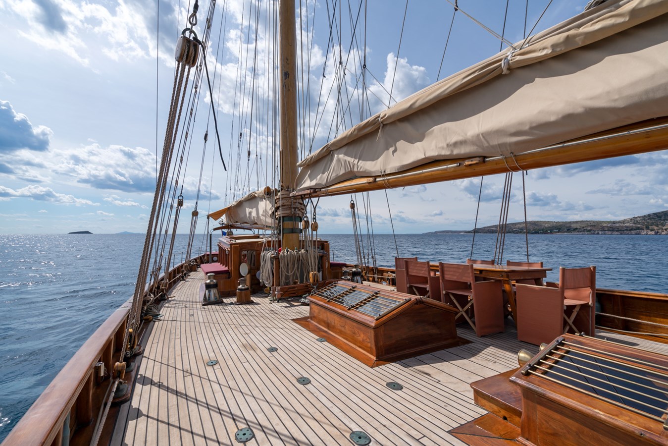 Constructed in 1921 by legendary German shipbuilder Max Oertz, S/Y “Aello” originally belonged to the prominent Greek – Egyptian merchant Antonis Benakis who bestowed important museums and collections to Greece. During its almost century-long history, it has sailed the seven seas, exploring faraway and mysterious destinations, and winning prestigious regattas. “Aello” is the only remaining large schooner of Max Oertz design in the world.She was the very first vessel to be registered as a yacht in Greece upon the establishment of the yacht Club of Greece and today offers her guests the unique opportunity to explore the Greek islands in timeless style on this wonderful and luxurious classic yacht.